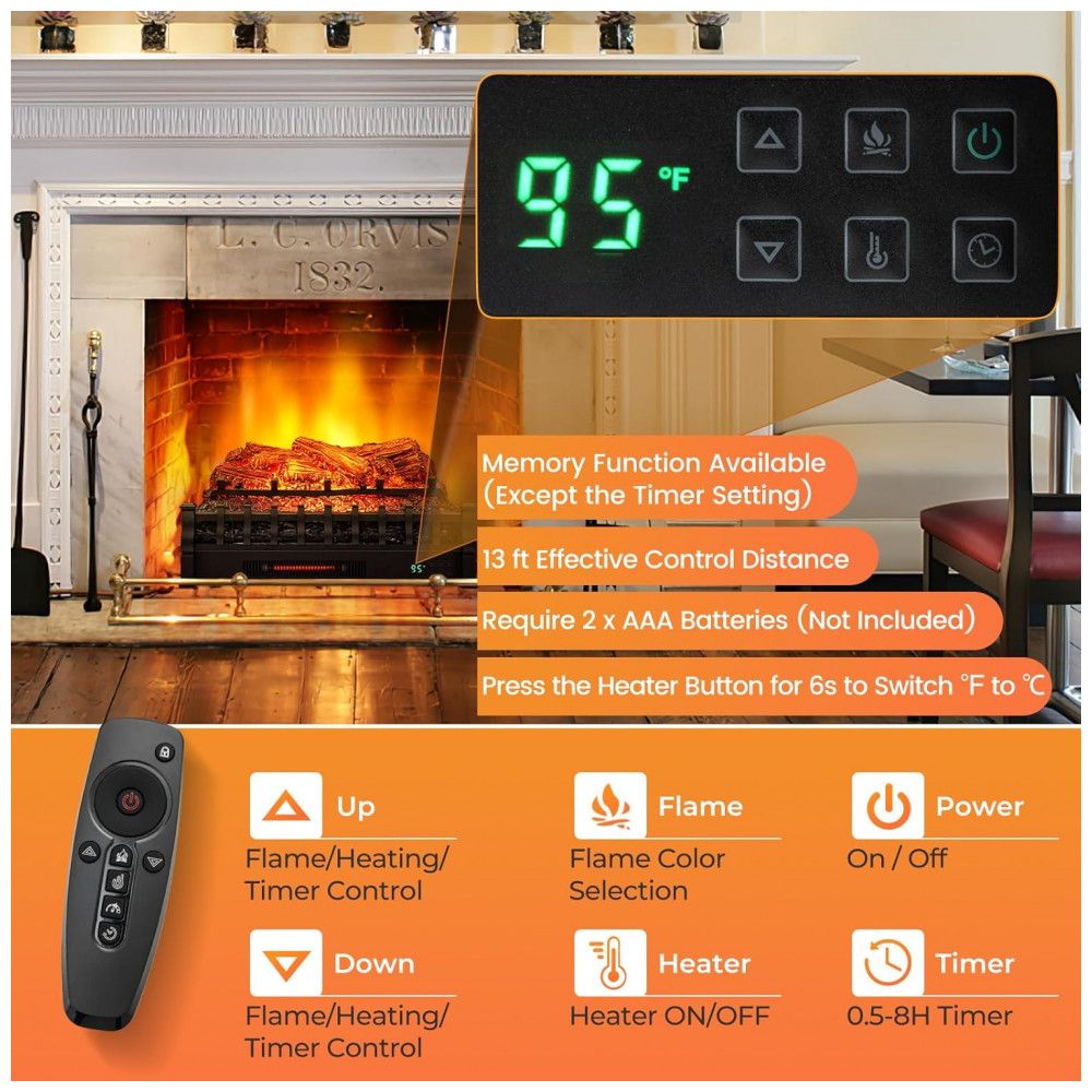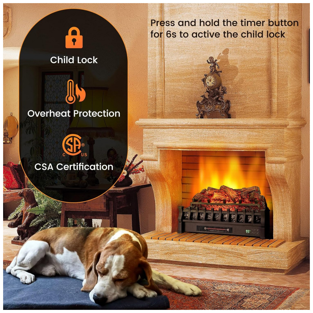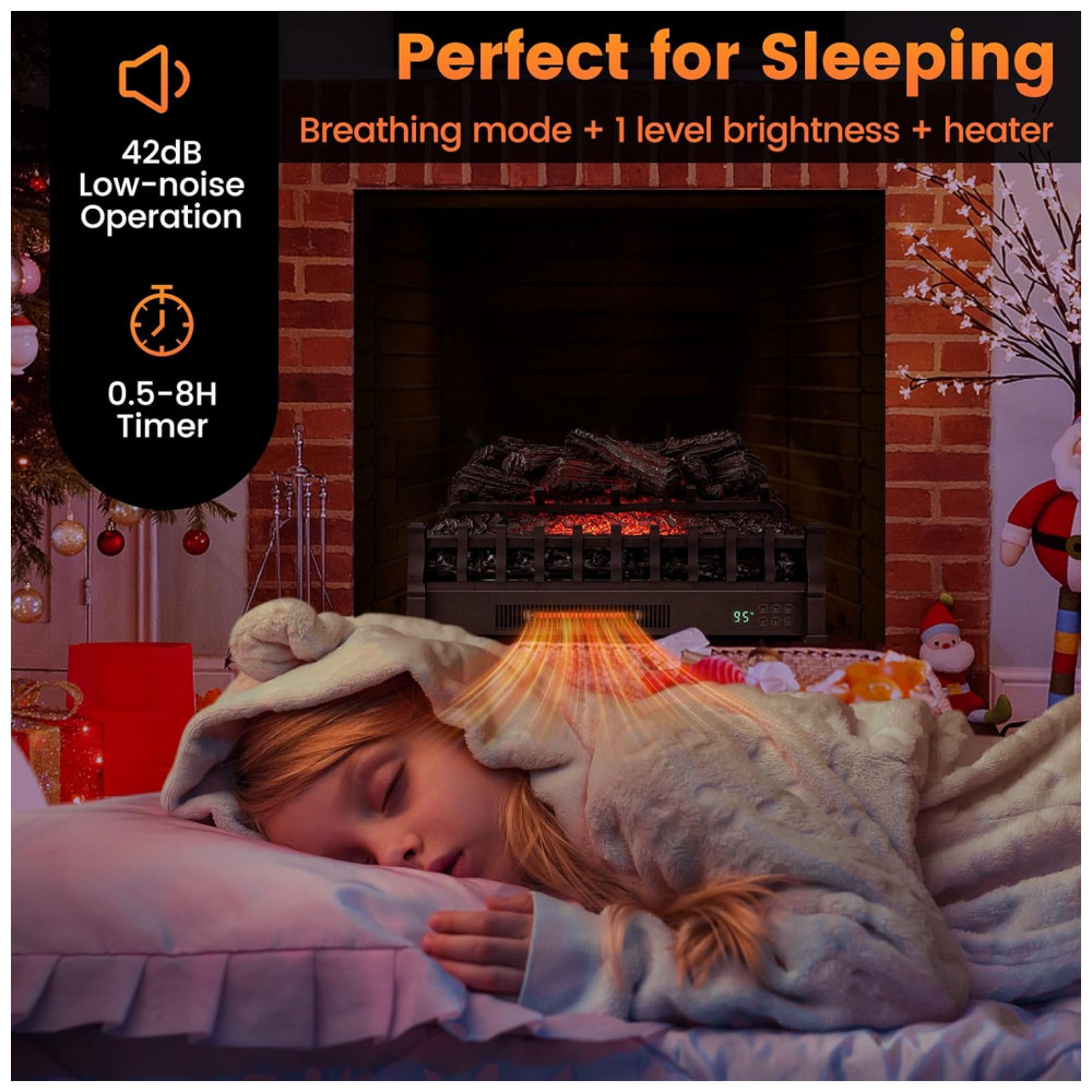 A segurança é garantida com a proteção contra superaquecimento, que desliga o aparelho automaticamente quando necessário. O efeito de chama realista, com toras pulsantes e em movimento, cria uma atmosfera quente e acolhedora. Além disso, o temporizador de desligamento automático pode ser ajustado de 0,5 a 8 horas, economizando energia enquanto você dorme.