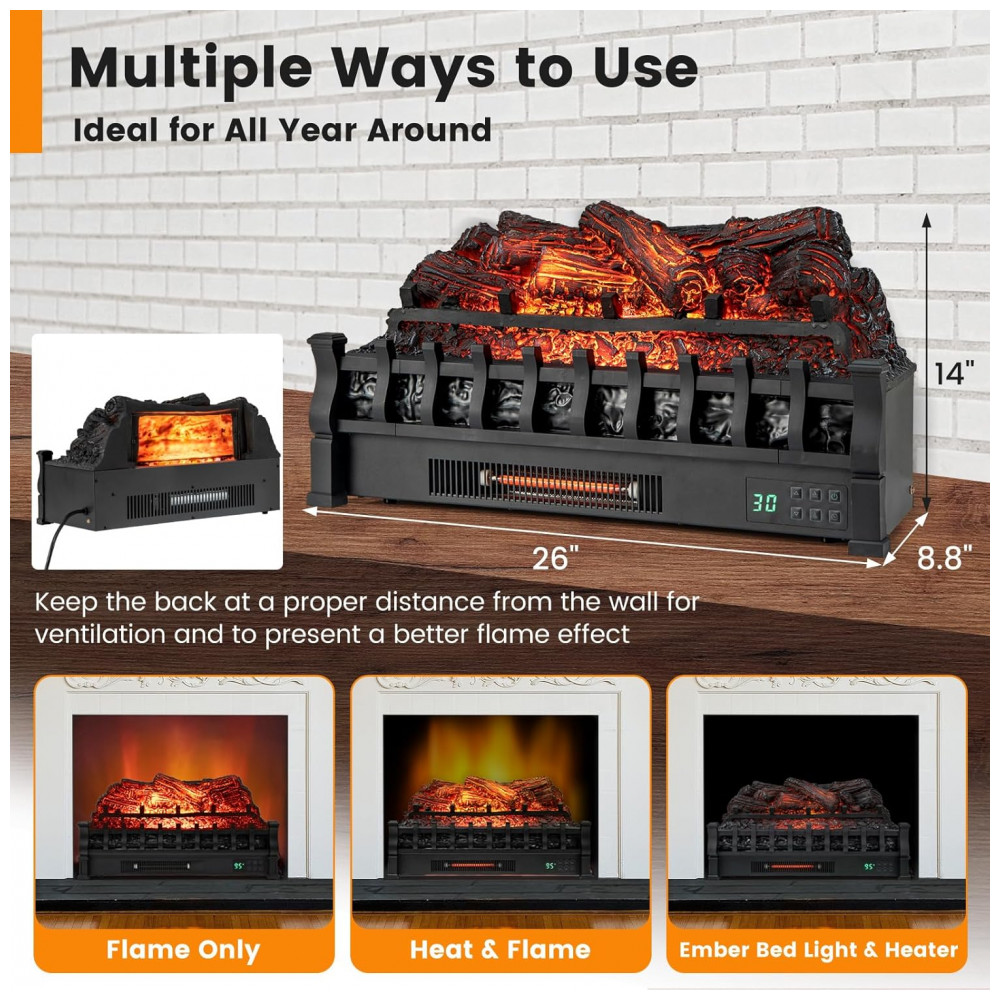 1 x Conjunto de Lenha de Lareira Elétrica de 26 Polegadas