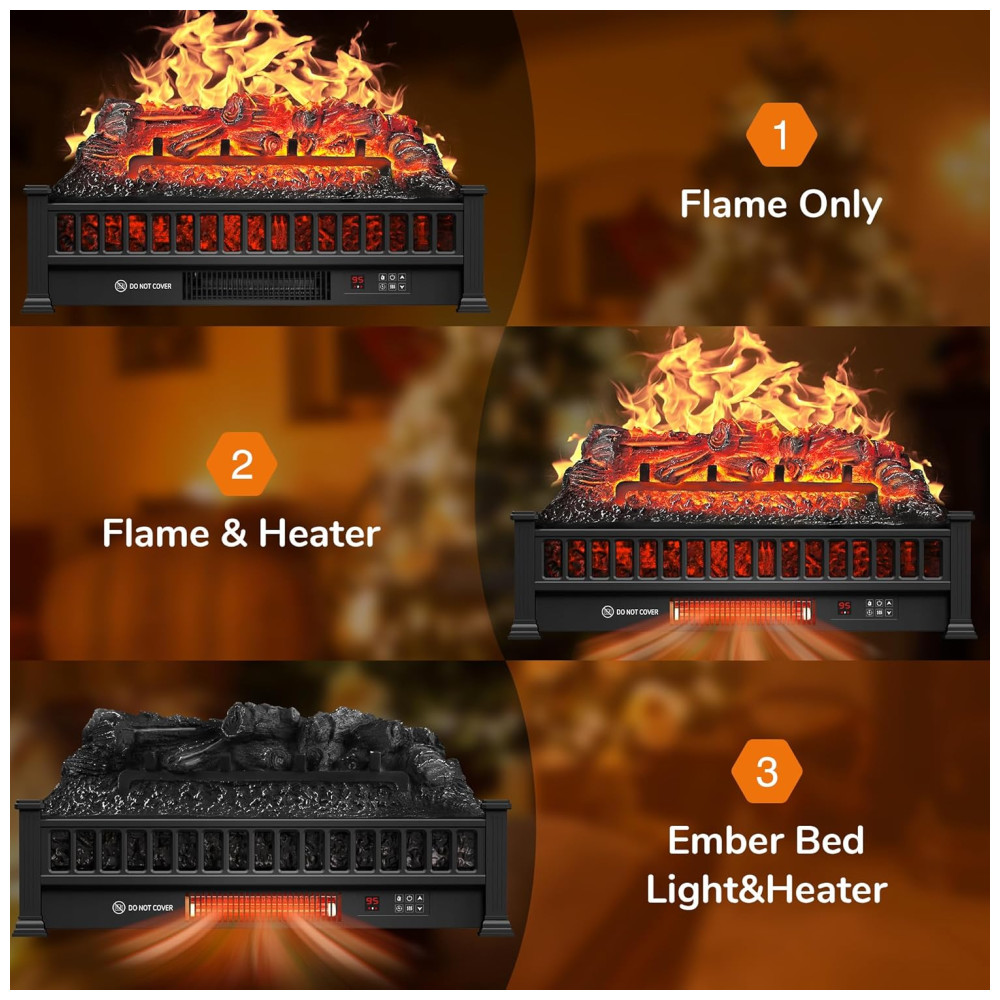 Este aquecedor de lareira a lenha utiliza tecnologia de aquecimento infravermelho com tubo de quartzo para fornecer até 1500 W de potência, aquecendo rapidamente o ambiente. Equipado com toras de resina com aparência realista de bétula, ele recria vividamente o efeito de uma lareira elétrica tradicional, oferecendo 5 opções de chama e 5 ajustes de velocidade do ar. Isso cria um ambiente romântico e aconchegante sem a necessidade de calor adicional, mantendo o quarto limpo e o ar fresco.