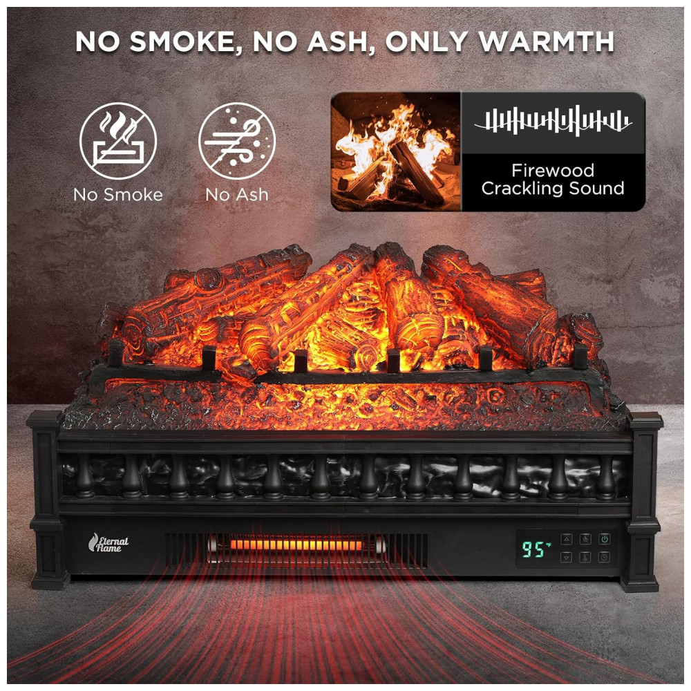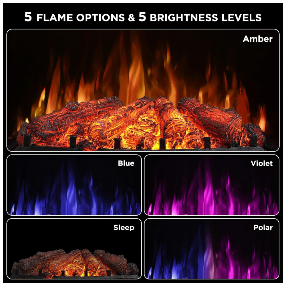 O aquecedor de zona de 1500 W utiliza um tubo de quartzo infravermelho, proporcionando maior eficiência em comparação aos aquecedores ventilados tradicionais. Oferece calor aconchegante sem ressecar a pele ou o ambiente, evitando eletricidade estática. Com 5 opções de chama e 5 níveis de brilho, incluindo o modo de respiração exclusivo que suavemente ilumina a cama de brasas sem perturbar o sono.