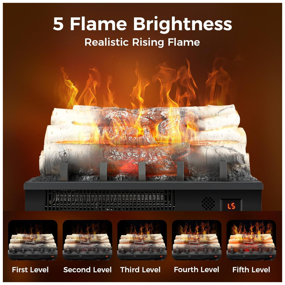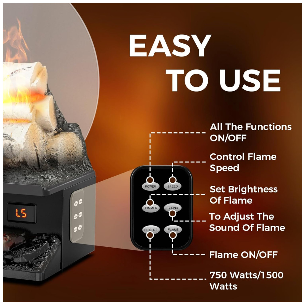 Com 15 níveis ajustáveis de velocidade da chama, você pode personalizar a intensidade do efeito visual para se adequar ao ambiente desejado. O design atualizado inclui registros e brasas de resina brilhante e é fácil de usar, com um controle remoto e um painel de controle simples para ajustar a temperatura e o brilho da chama.