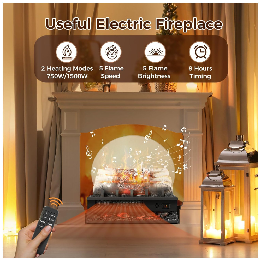 Este aquecedor de lareira elétrica é ideal para quem deseja criar uma atmosfera aconchegante em casa. Com cinco níveis de brilho da chama e quatro opções de sons — modo silencioso, canto de pássaros, som das ondas e carvão queimando — ele proporciona uma experiência completa e imersiva. O aquecedor possui dois modos de aquecimento, oferecendo um aquecimento rápido em apenas 30 segundos e é capaz de aquecer efetivamente uma sala de até 37m2.