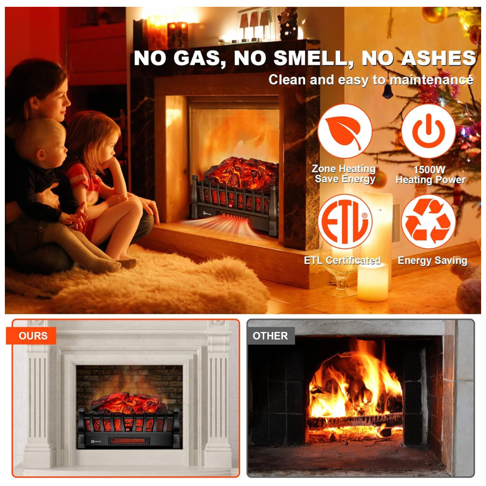 Você pode programar um timer de 1 a 24 horas para que o aquecedor ligue ou desligue automaticamente, oferecendo ainda mais conveniência. As toras elétricas são versáteis e podem ser instaladas de forma independente ou embutidas, permitindo que você as coloque em qualquer lugar, seja na sala de estar, no quarto, no porão, no escritório, no pátio ou em uma loja.