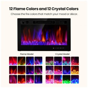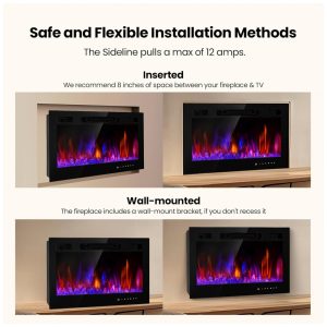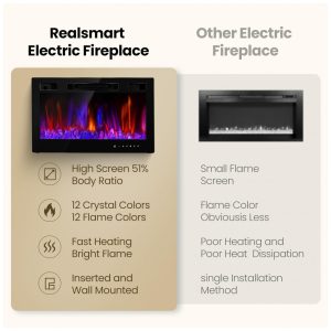 Lareira Elétrica Embutida 762 cm RealSmart 1500W – Aquecedores de Parede Controle Remoto – 12 Cores de Chama – Design Moderno – Baixo Ruído