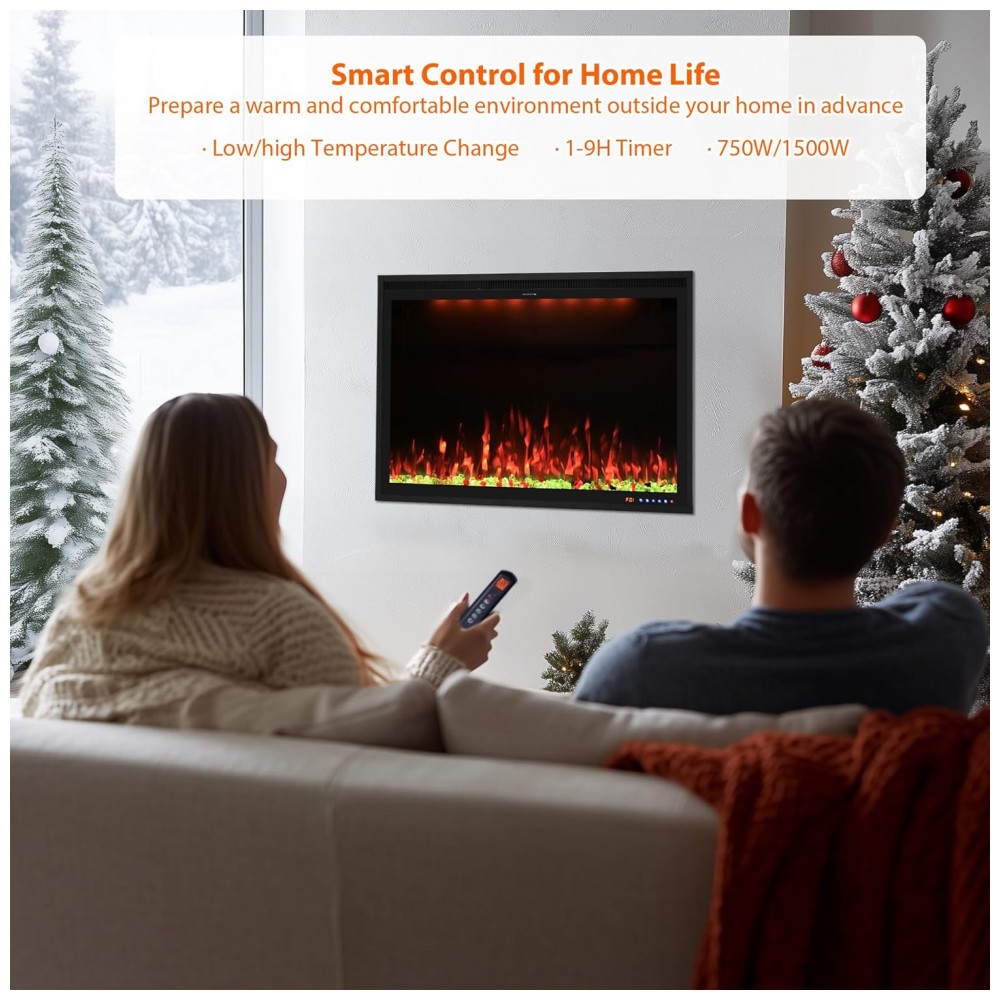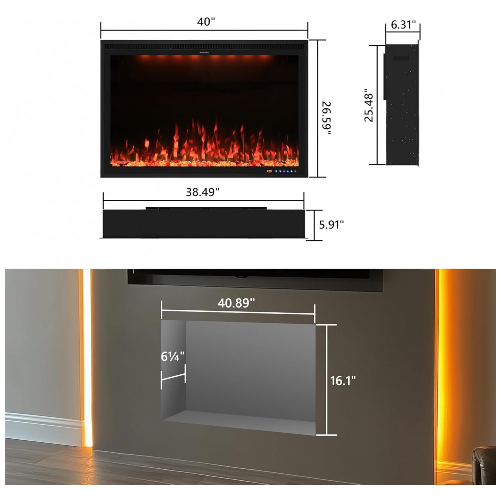 Lareira Elétrica Embutida Valuxhome 1016 cm com Aplicativo Tela de Toque Controle Remoto e Cores Personalizadas Aquecedor Interno