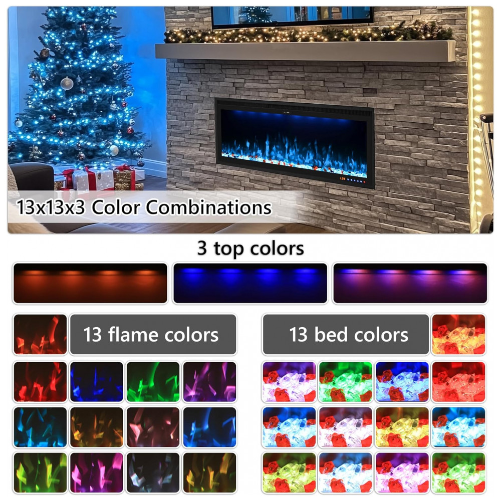 Desfrute do calor e da beleza da Lareira Elétrica Valuxhome de 60 polegadas. Com 13 cores de chamas, 13 cores de brasas e 3 cores de luz no topo…