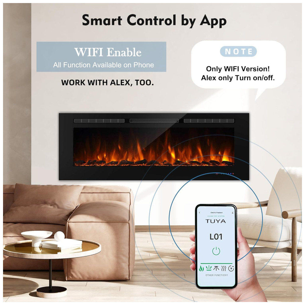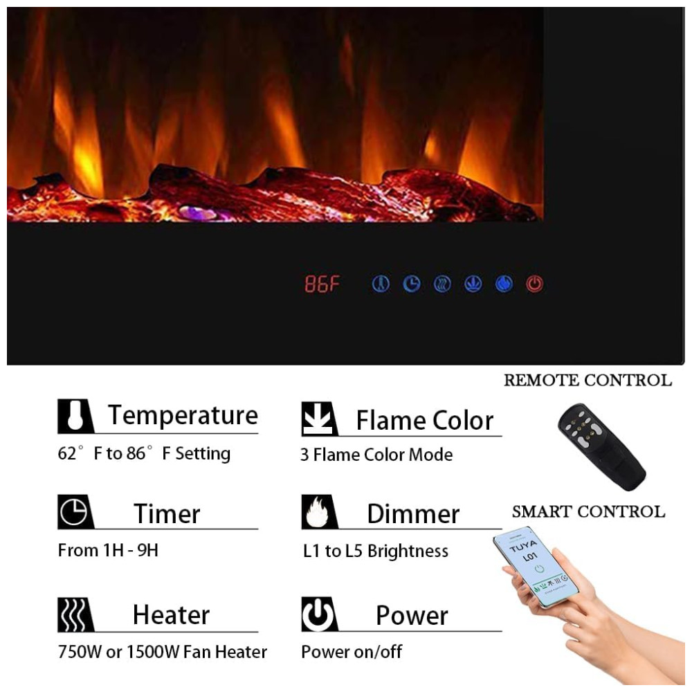 A lareira elétrica inteligente Masarflame WiFi é um aquecedor de lareira embutido, com aparência mutável e três cores de chama, além de cinco níveis de brilho da chama. Com configuração de calor ou sem calor, o aquecedor possui potência de 750 W a 1500 W e proteção contra superaquecimento. Com três modos de controle controle remoto, controle de painel de toque ou controle inteligente e um temporizador de 19 horas, o aquecedor também oferece duas opções de leito de brasa, DRIFTWOOD ou CRYSTAL, para personalização. A área de cobertura do aquecedor é de 41,80 m2 e seu comprimento de cabo de alimentação é de 1,82 metros. Além disso, a lareira conta com um efeito de chama de três cores queimando com cinco intensidades de chama, e pode ser operada sem aquecimento durante todo o ano. Com controle inteligente via APP ou Alexa, a lareira elétrica Masarflame é ideal para casa, escritório ou qualquer lugar onde seja necessário aquecimento ambiente. O aquecedor vem com um manual do usuário fácil de seguir e pode ser instalado na parede, perfeitamente adequado para parede 2 X 6. Com múltiplos modos de operação, termostato de economia de energia e proteção de segurança contra superaquecimento, a lareira elétrica Masarflame é uma ótima opção para quem busca conforto e praticidade.