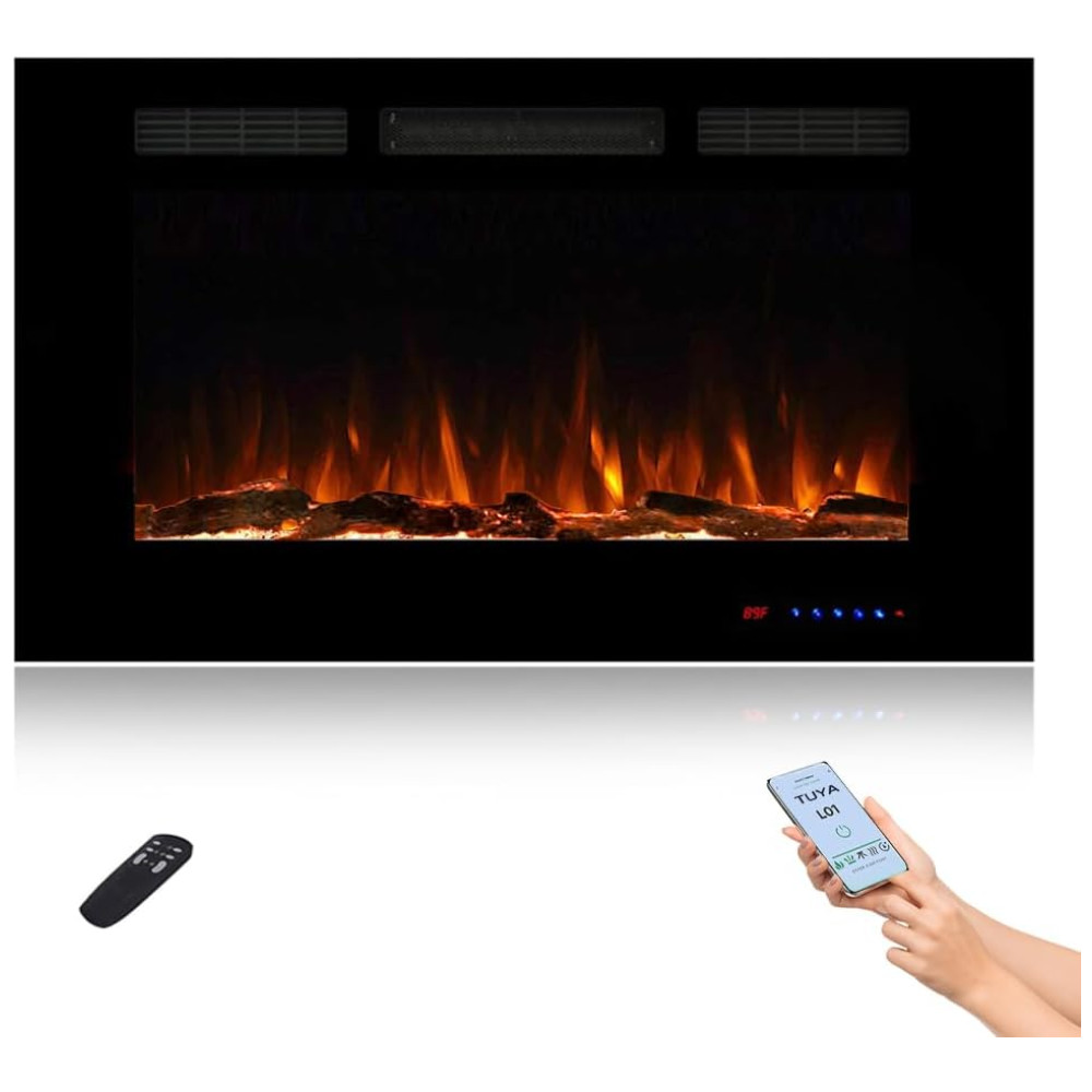 Com o controle inteligente, além do controle remoto e do painel de toque, é possível operar o aquecedor de lareira por APP ou Alexa, permitindo acesso ao Smart Home Control a qualquer hora e em qualquer lugar facilmente. Os múltiplos modos de operação incluem luz LED de ultra alta intensidade refletindo no tronco realista, troncos falsos ou cristais de sua escolha, queima de chama de 3 cores com 5 intensidades de chama e controle de temporizador de 19 horas. O aquecedor também pode ser operado sem aquecimento durante todo o ano.