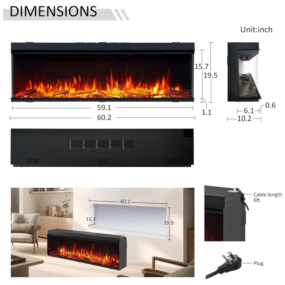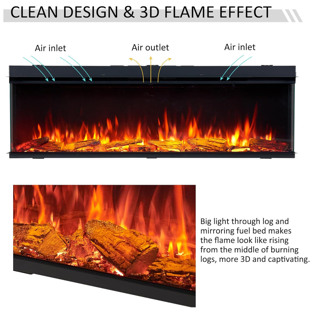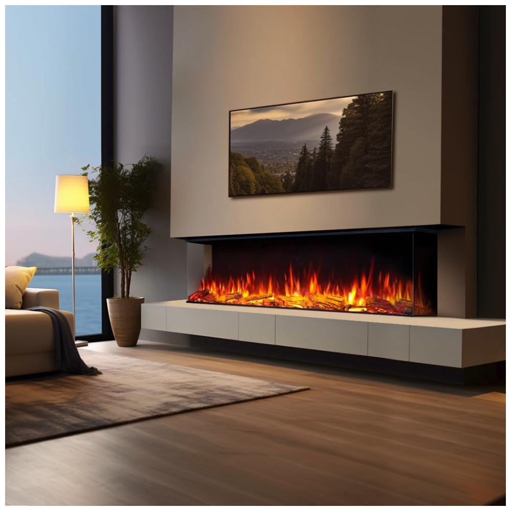 Lareira Elétrica Inteligente Legend Flame 150m com Inserção Embutida Visualização de 123 Ângulos Aquecedor 750W/1500W Múltiplas Cores de Chamas Compatível com Alexa e Google