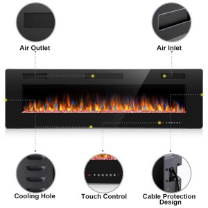 Lareira Elétrica Joy Pebble de 152 cm Embutida ou de Parede com Aquecedor 750/1500W LED Touch Controle Remoto Timer Chamas Ajustáveis em Cor