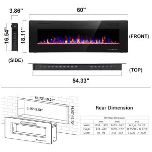 A lareira elétrica pode ser embutida na parede ou montada nela. Com design ultrafino, ela é moderna, leve e fácil de instalar, sendo perfeita para quartos, salas de estar e centros de entretenimento. A lareira sem ventilação tem dois modos de aquecimento 750 W e 1500 W que podem ser ajustados para economia de energia e aquecimento de zona suplementar de até 37,16 m2. Possui certificado ETL e segurança contra superaquecimento. O calor é bom para manter a umidade natural do ar sem deixar o ambiente muito seco. A lareira LED de espectro total tem 12 modos de cor de leito de chama LED, 5 modos de velocidade de chama e 5 níveis de brilho de chama, além de pedra de vidro cristal que cria um efeito de chama maravilhoso e realista para uma experiência de fogo real sem cinzas e gás. O controle remoto e a tela sensível ao toque de LED tornam a lareira elétrica de parede fácil de operar, com visor digital claro, controle de temporizador de 1 a 8 horas e interruptor independente de aquecimento e chama. No modo de espera, seu ruído é muito baixo, assim como o ruído branco, o que pode ajudar a melhorar a qualidade do sono. A Joy Pebble está comprometida em fornecer produtos premium e serviço atencioso. Conecte e use sob uma voltagem de 110, não pode ser conectado fisicamente.