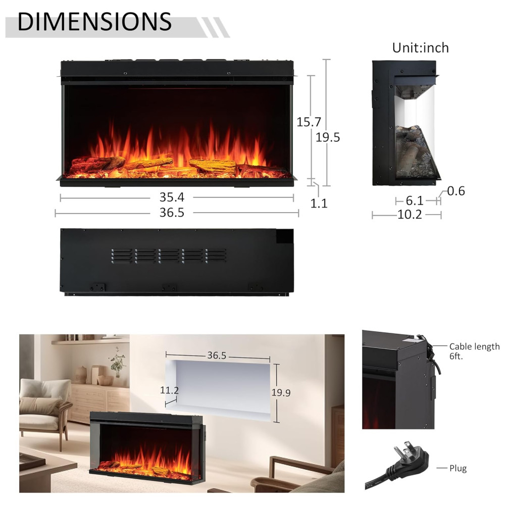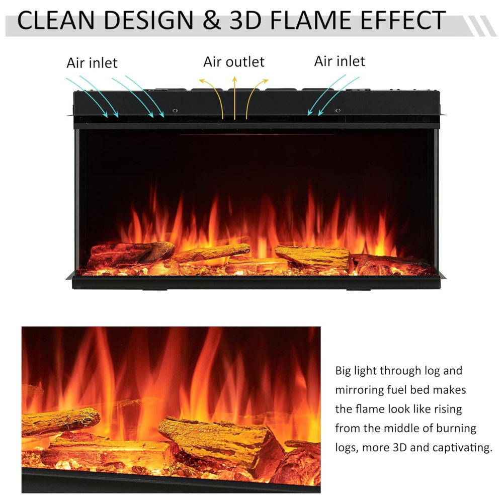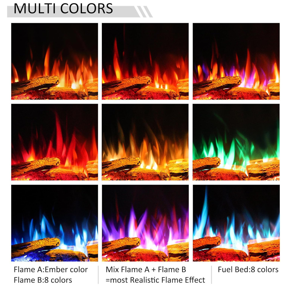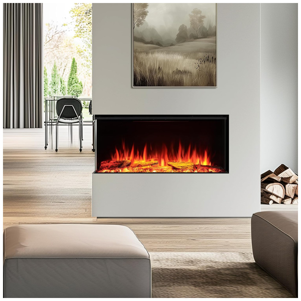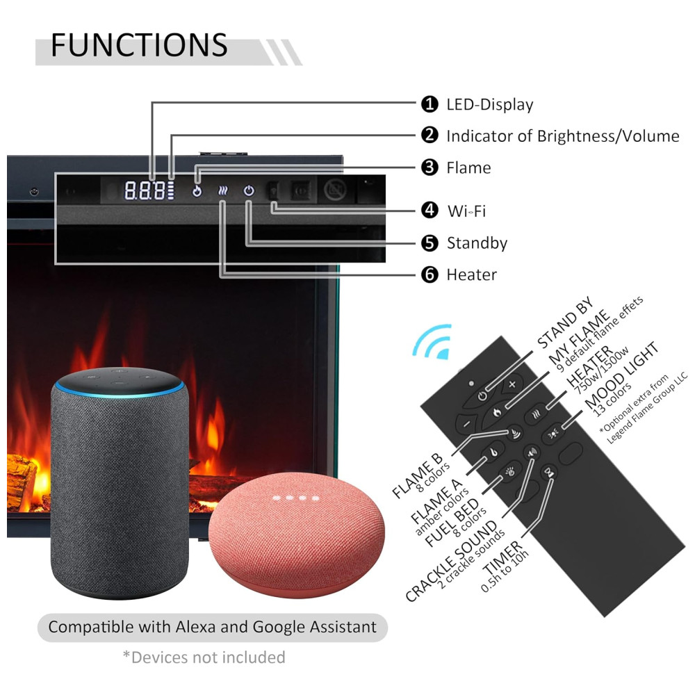 Lareira Elétrica LegendFlame 889 cm W Embutida Inteligente Vista Lateral 123 Aquecedor 750W-1500W Chamas de Múltiplas Cores Compatível com Alexa