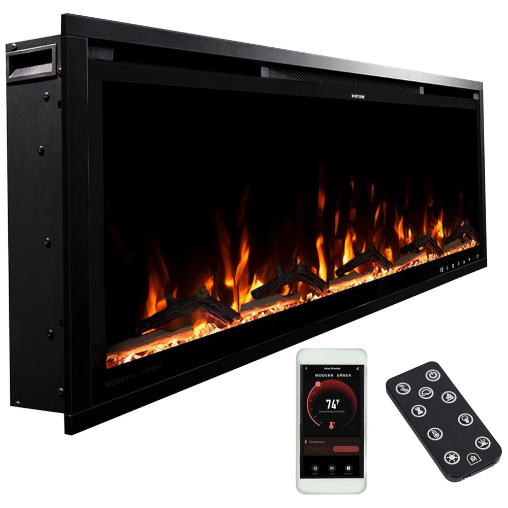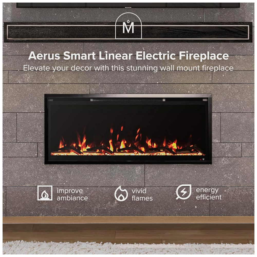 A lareira elétrica linear Aerus Slim pode ser instalada de duas formas diretamente na parede ou embutida em uma parede com moldura de 2×4 para uma aparência nivelada. O controle remoto incluído permite ajustar facilmente as configurações de calor, cor da chama e ligar o dispositivo. Além disso, é possível conectar se ao WiFi com seu assistente doméstico favorito para ajustar as configurações com sua voz ou aplicativo de dispositivo móvel. É possível definir a temperatura ambiente desejada ou desligar completamente o aquecimento durante o verão. As chamas funcionam com ou sem chamas para que você controle o ambiente na sala. A lareira inclui efeitos sonoros de crepitação integrados e brasas de cristal de madeira de floresta. Com chamas de LED ajustáveis em 5 cores vibrantes, 5 níveis de brilho, 3 velocidades de chama e 10 tons de leito de brasas, você controla sua lareira para se adequar ao seu estilo e necessidades. Há três opções de fiação conectar em uma tomada de 110 V com o cabo de 1,82 metros e o kit de plugue incluído ou conectar com fio para instalações profissionais na parede. É importante ter cuidado com a instalação de fiação.
