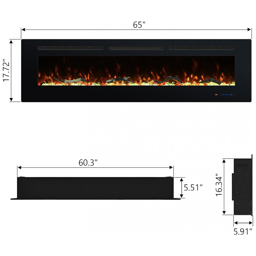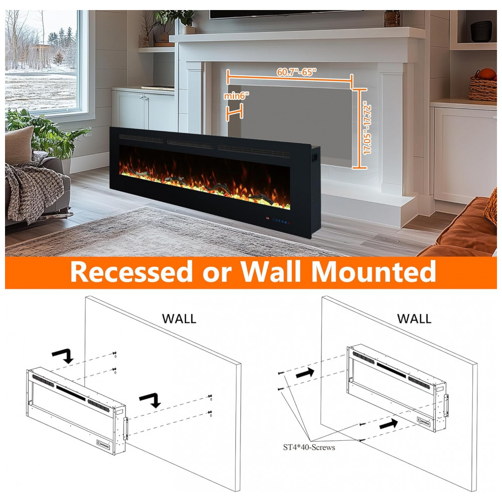 Lareira Elétrica Moderna de Parede e Embutida Valuxhome 1651 cm para Ambiente Interno 16 Opções de Cores Termostato Timer 19 Horas Aquecedor