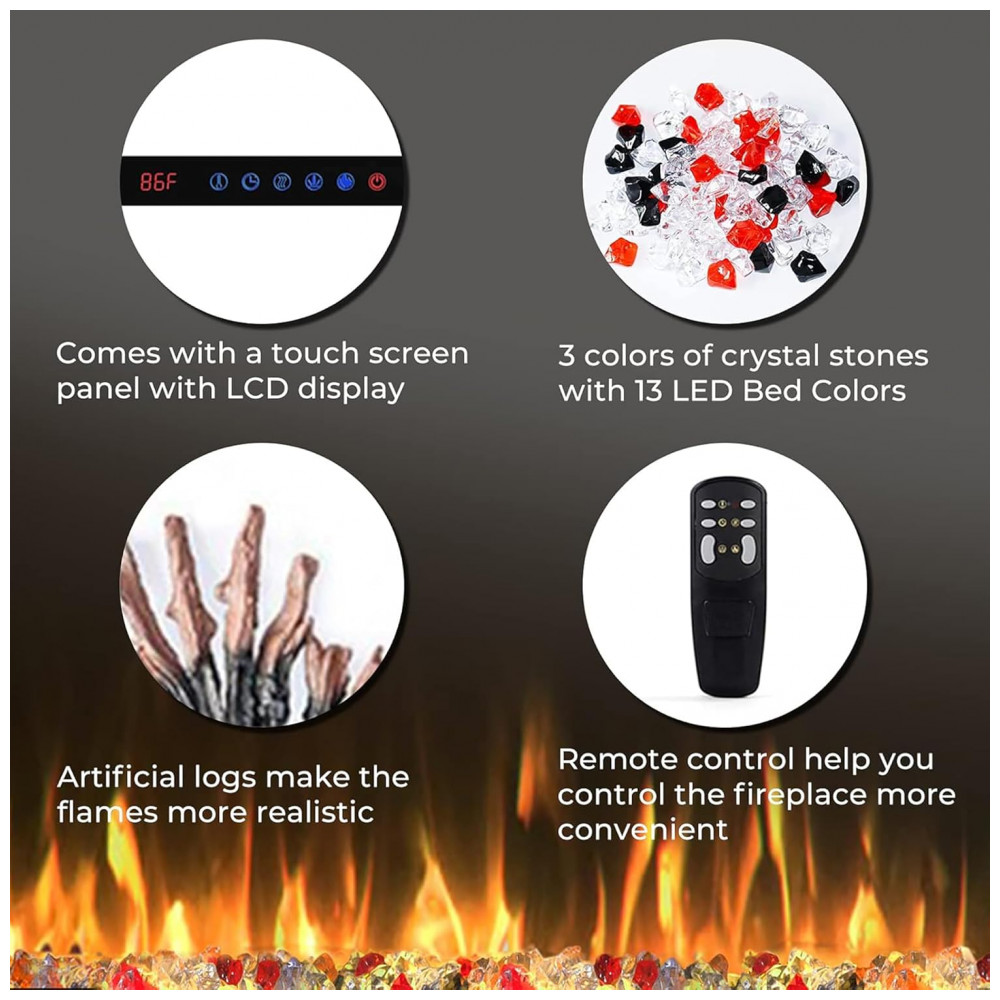 Desfrute de toda a elegância da Lareira Elétrica Valuxhome, com instalação simples e dimensões de 165 x 45 x 15 cm. Com 16 cores de chamas, 16 cores de leito, cristais e decorações de troncos, oferece um visual autêntico e aconchegante. Contando com dois modos de aquecimento (750W/1500W) e temperatura ajustável de 17°C a 30°C, aquece áreas de até 37 m² de forma eficiente. Seu design moderno se destaca em qualquer ambiente, podendo ser controlado via tela sensível ao toque ou controle remoto. Além disso, possui timer de desligamento automático de 1 a 9 horas e proteção contra superaquecimento.