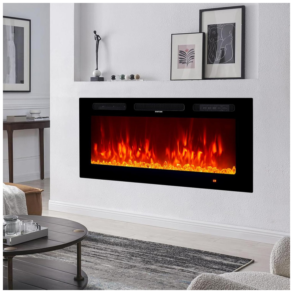 Lareira Elétrica oneinmil 91cm Embutida na Parede c/ LED 12 Chamas e Cores Timer Ajustável Controle Remoto com Tela – Aconchego Garantido!