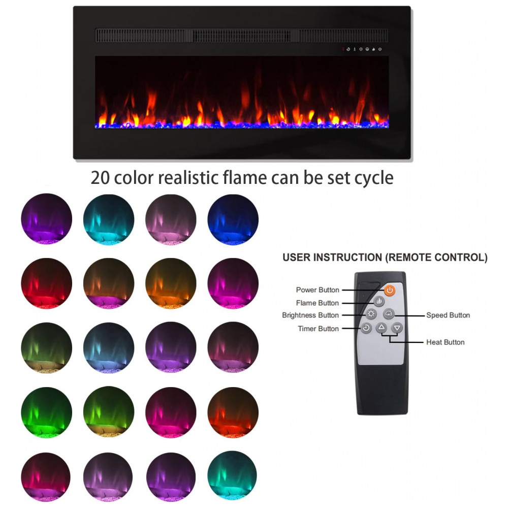 Esta lareira elétrica versátil está disponível em três tamanhos diferentes e pode ser montada na parede ou inserida em um espaço, oferecendo opções flexíveis de instalação. Com a experiência de chama personalizável, você pode desfrutar de um efeito de chama realista com 20 cores ajustáveis, 5 níveis de brilho e 5 velocidades de chama, criando o ambiente perfeito para sua decoração. Além disso, esta lareira oferece vários modos de operação, permitindo que você escolha entre um conjunto de toras ou mídia de cristal para realçar o apelo visual da lareira. A operação é conveniente, com controle remoto incluído ou tela sensível ao toque integrada. A unidade pode funcionar com ou sem aquecimento, proporcionando uso durante todo o ano. Equipado com tecnologia LED de economia de energia, temperatura ajustável 6286, proteção contra superaquecimento e função de temporizador de 18 horas com desligamento automático para maior segurança e conveniência.