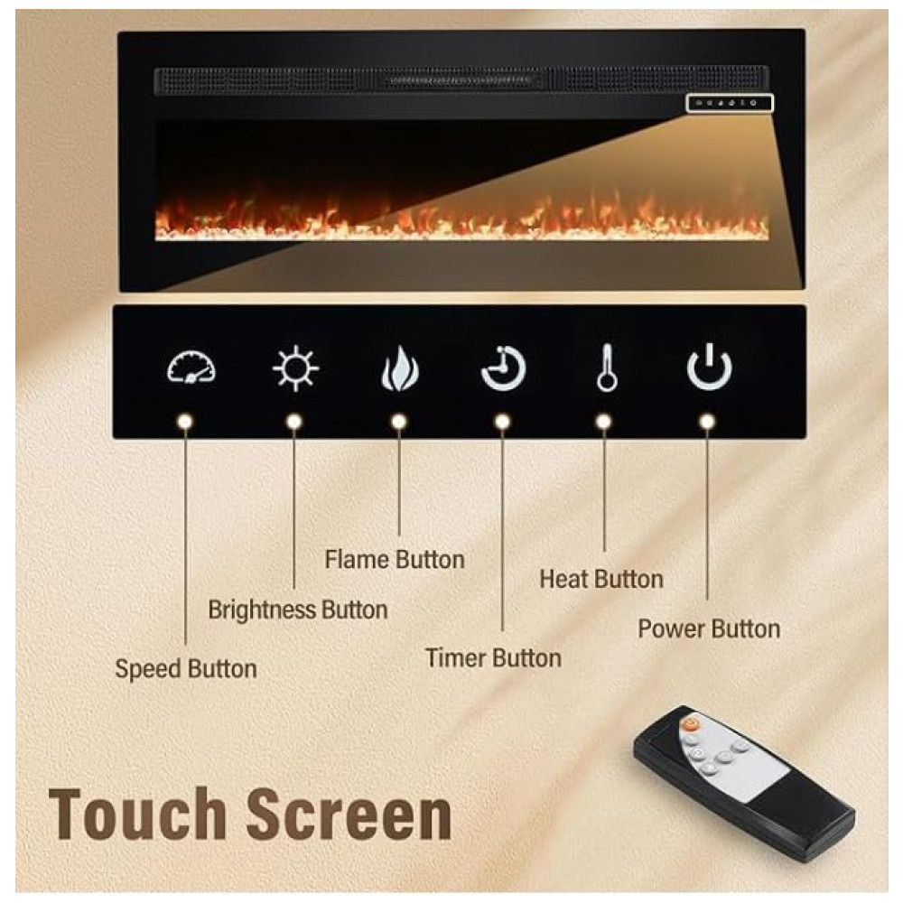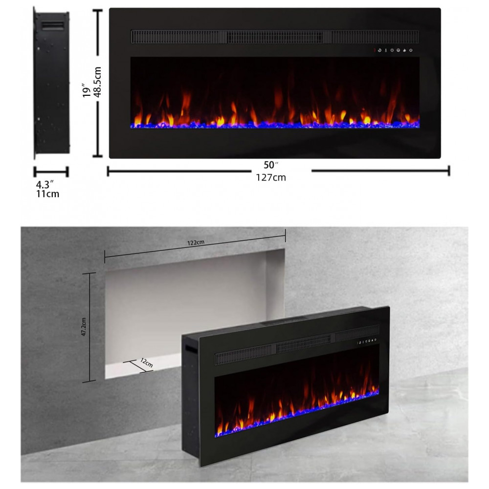 Lareira Elétrica Panana de 127 cm Embutida ou de Parede com Timer LED Touch Controle Remoto Chamas Ajustáveis em Cor e Velocidade Aquecimento
