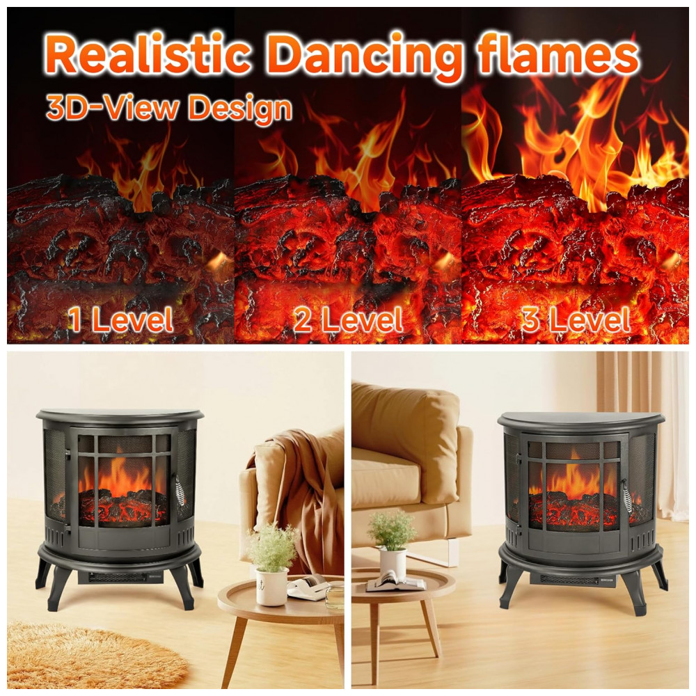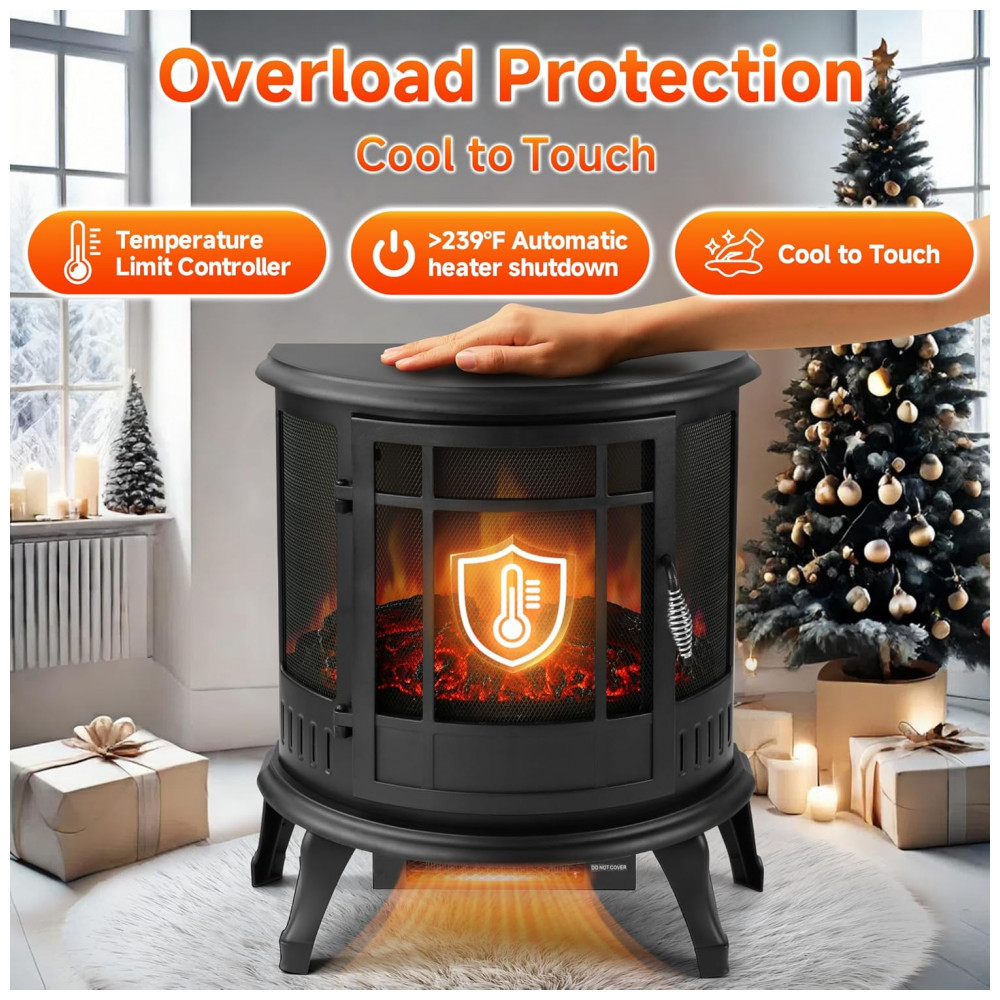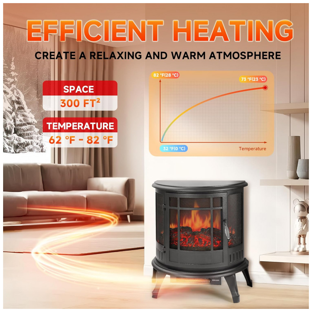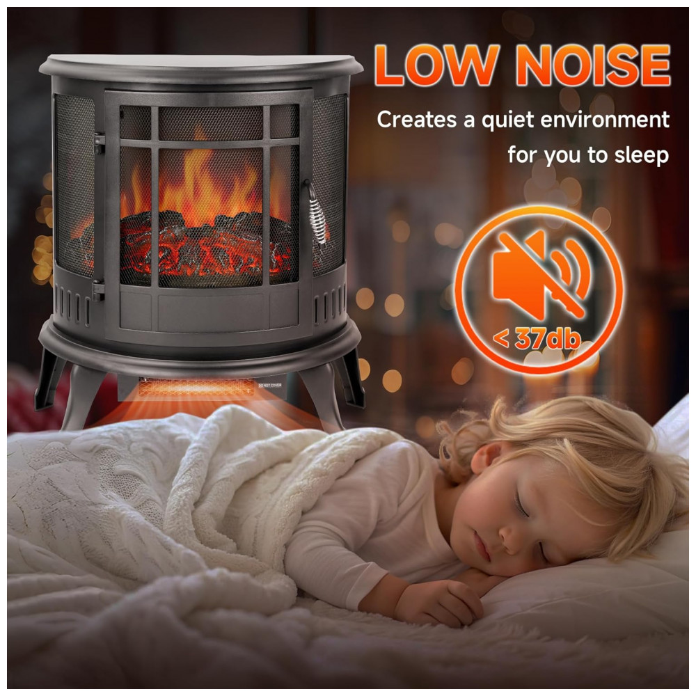 Este produto é um REGISTRO DE QUEIMA AUTÊNTICO que simula o fogo a lenha com níveis ajustáveis de brilho. É equipado com um CONTROLE REMOTO que possui funções de temporizador e termostato, permitindo que você controle a temperatura e o tempo de uso. Esta unidade é portátil e pode ser facilmente movida entre quartos, salas de estar ou salas de estar, fornecendo calor suplementar para espaços pequenos de até 121,58 metros quadrados.