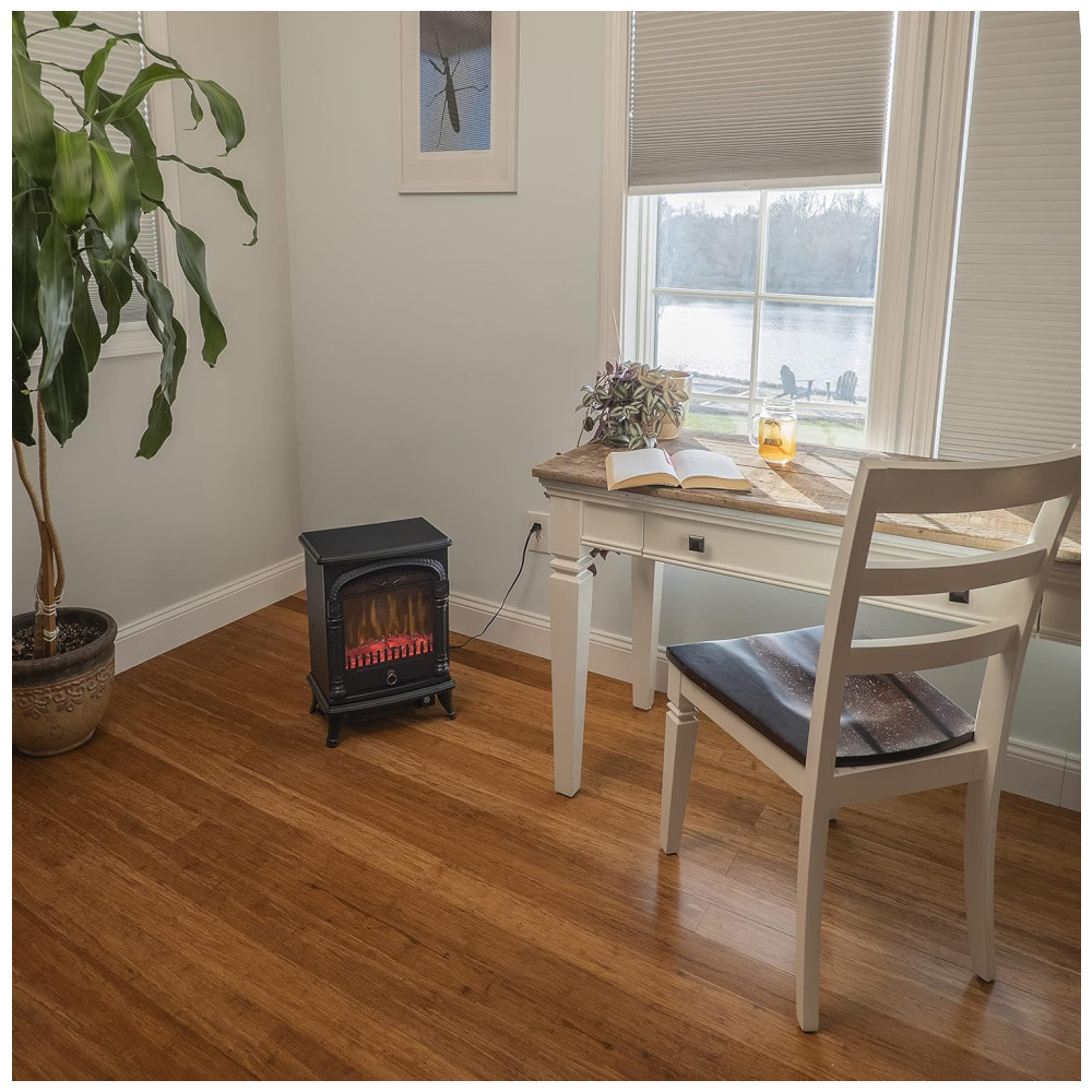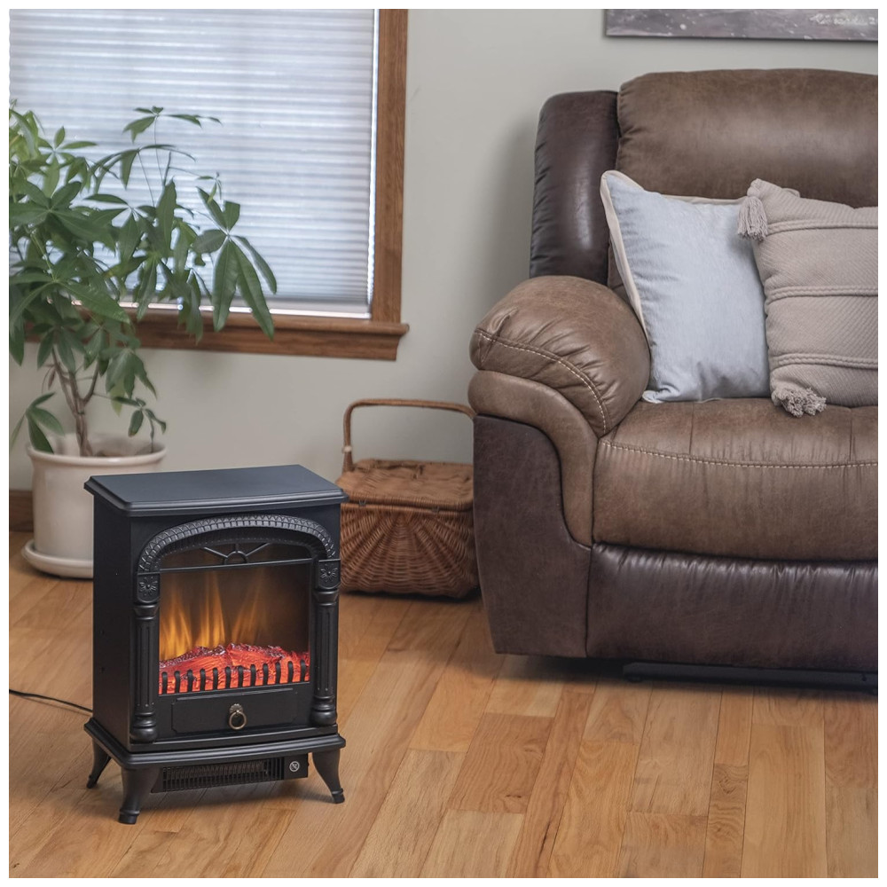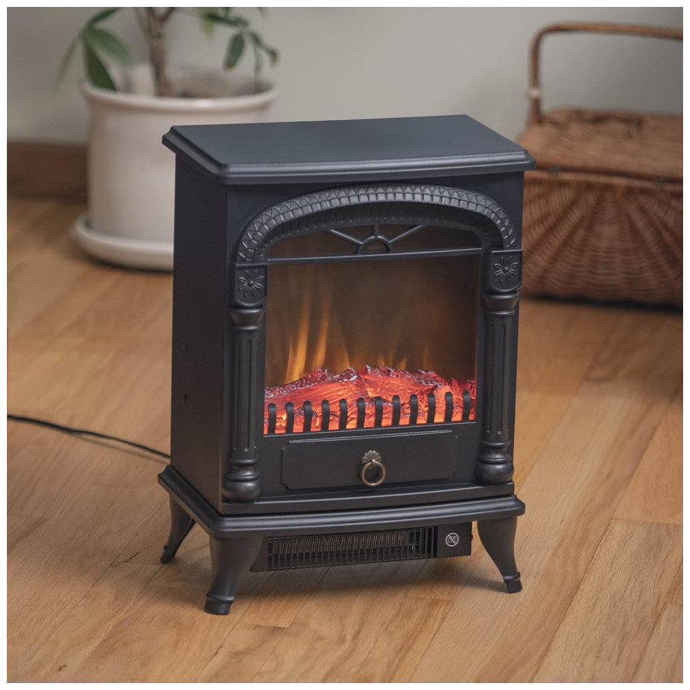Lareira Elétrica Portátil com Efeito de Chama Realista 3D e Termostato Ajustável 110V 1500W Comfort Zone Preta