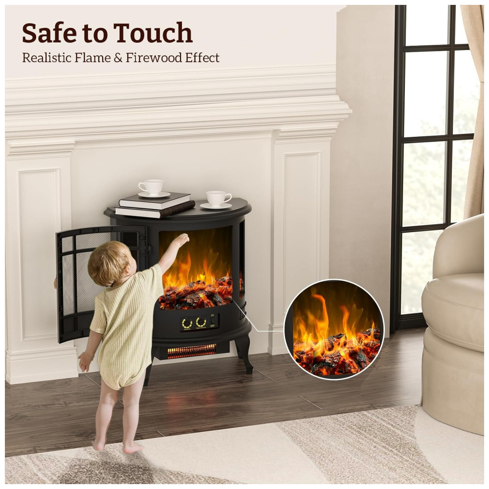 Proteção Segura: Projetado com segurança em mente, o aquecedor de lareira elétrica possui um exterior frio ao toque e proteção contra superaquecimento. Basta montar as pernas, ligar e acionar para obter calor instantâneo. O sistema de proteção contra superaquecimento desliga a energia quando a temperatura atinge um nível crítico para garantir a segurança do usuário.