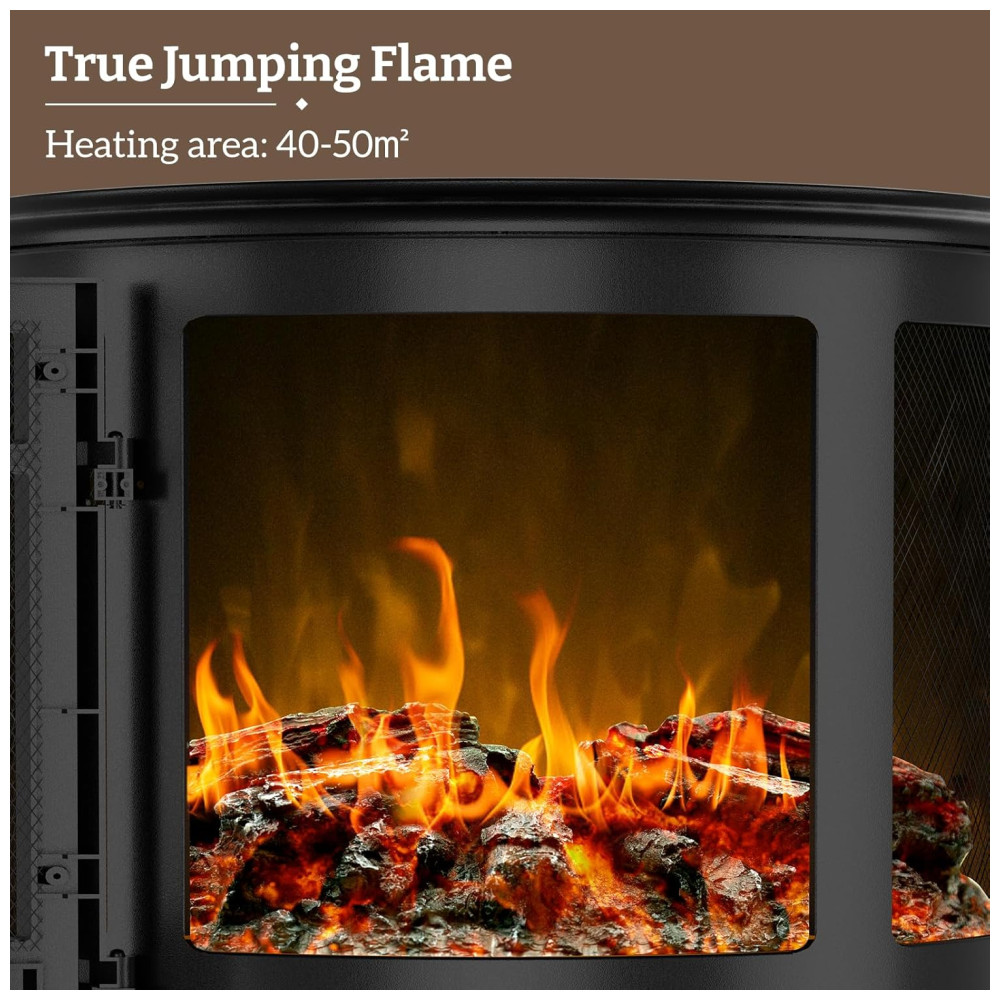 Efeito de Chama 3D Realista: Com o recurso de chama 3D, você pode desfrutar da beleza visual de chamas reais sem o perigo de toras e chamas verdadeiras neste aquecedor de lareira independente. A combinação de chamas brilhantes e toras cria uma atmosfera aconchegante, permitindo que você desfrute da experiência visual e do calor deste aquecedor no seu quarto, sala de estar ou sala de estar com familiares e amigos.