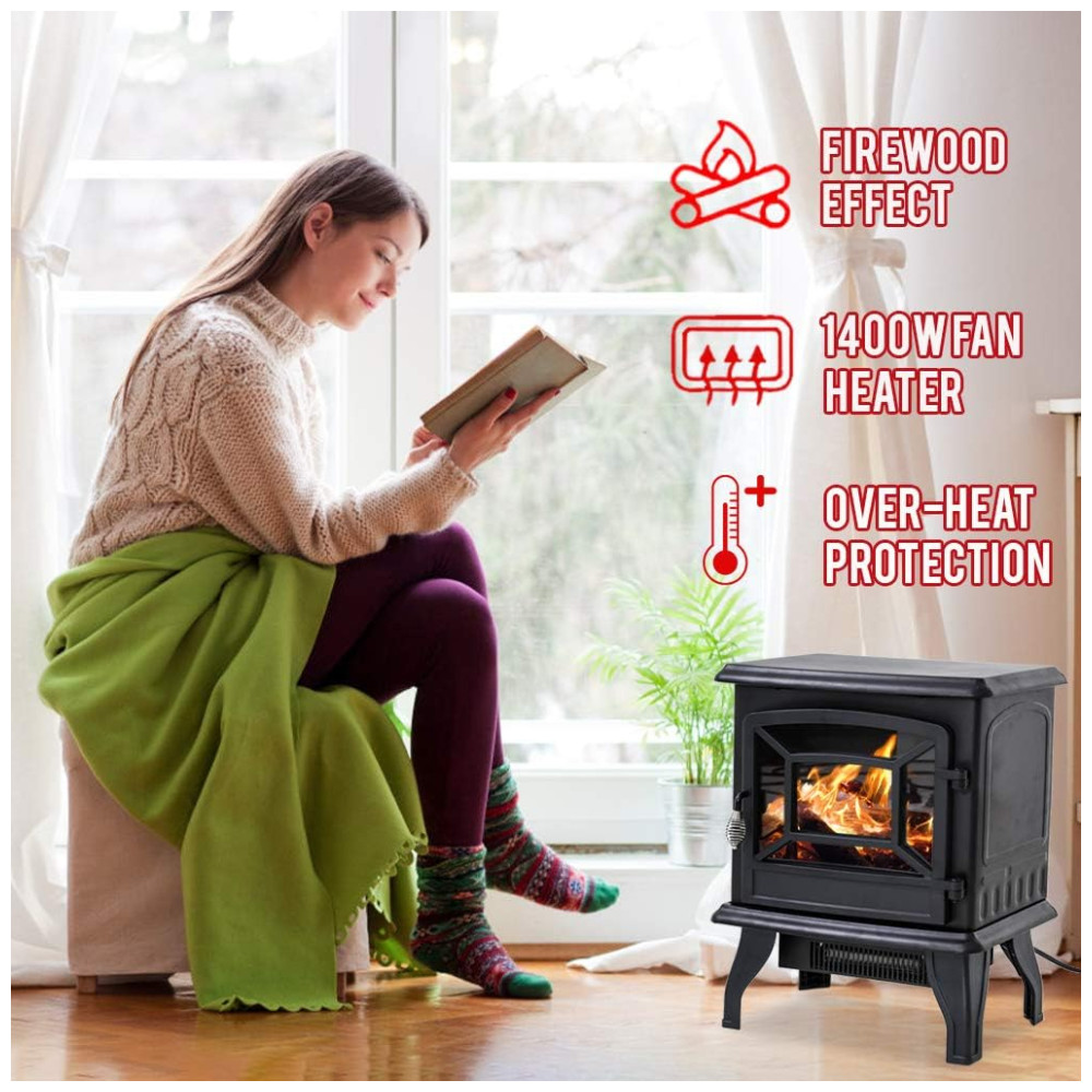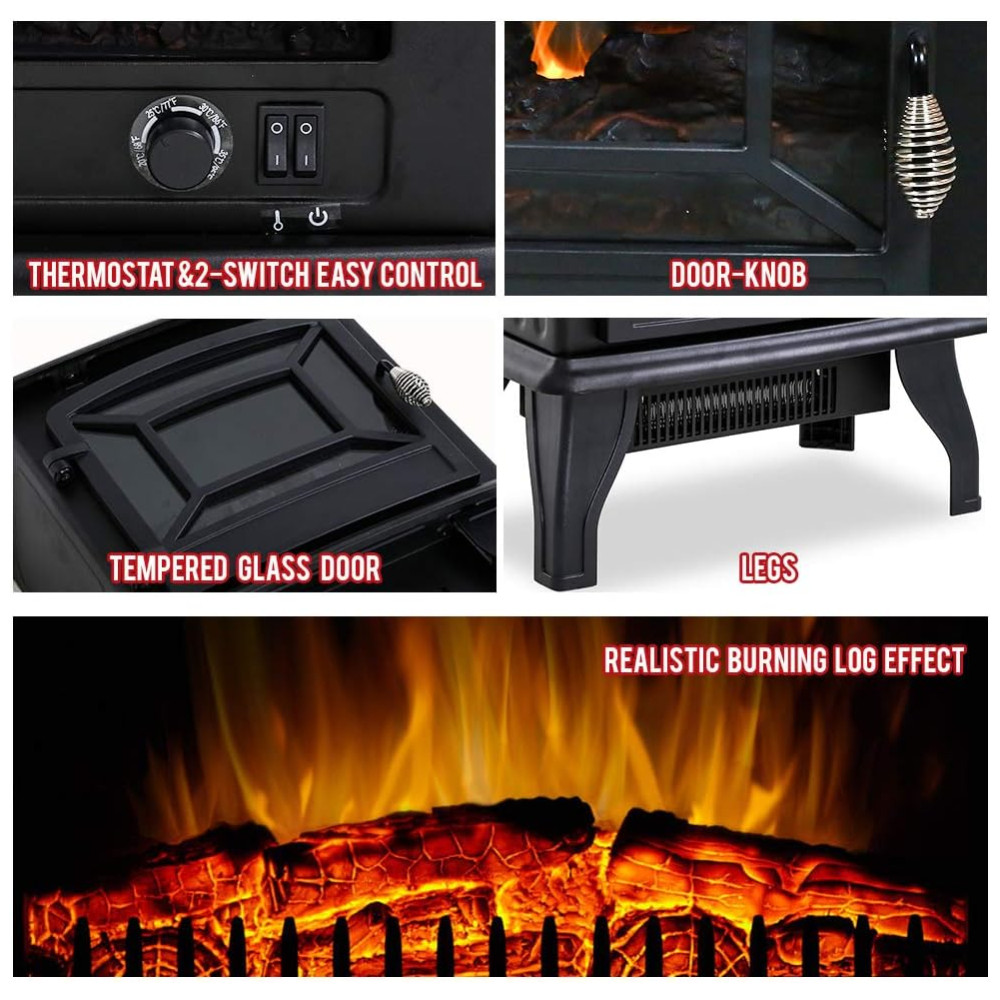 Lareira Elétrica Portátil com Termostato e Efeito de Chama Ralista 110V 1500W FDW Preta