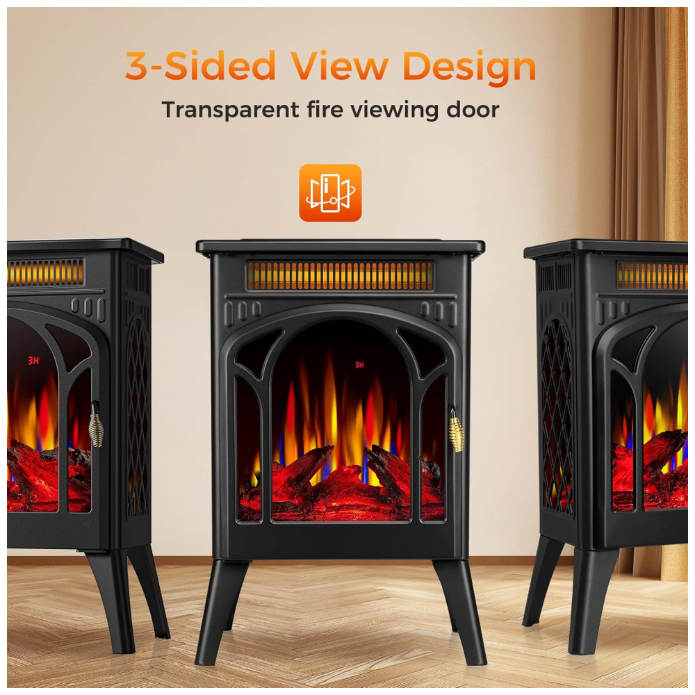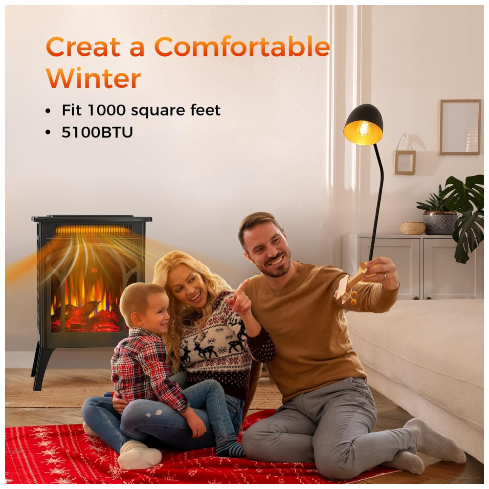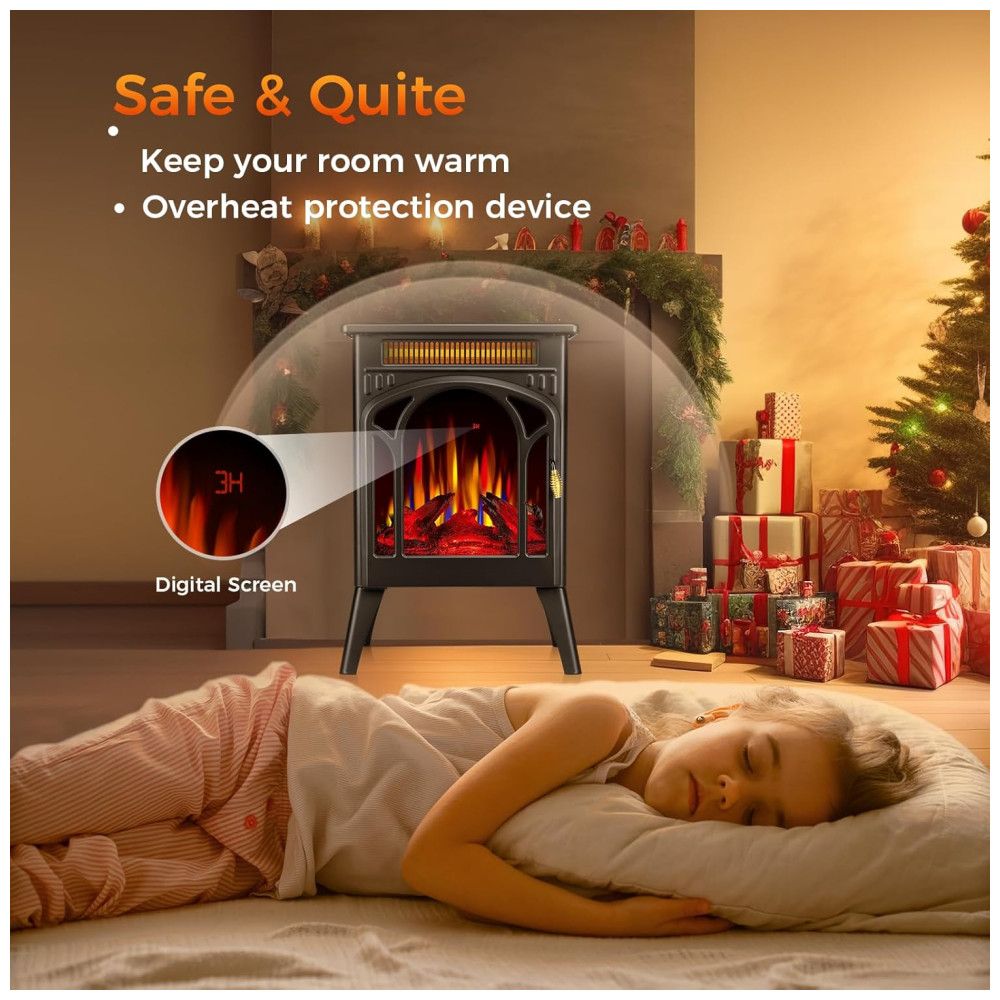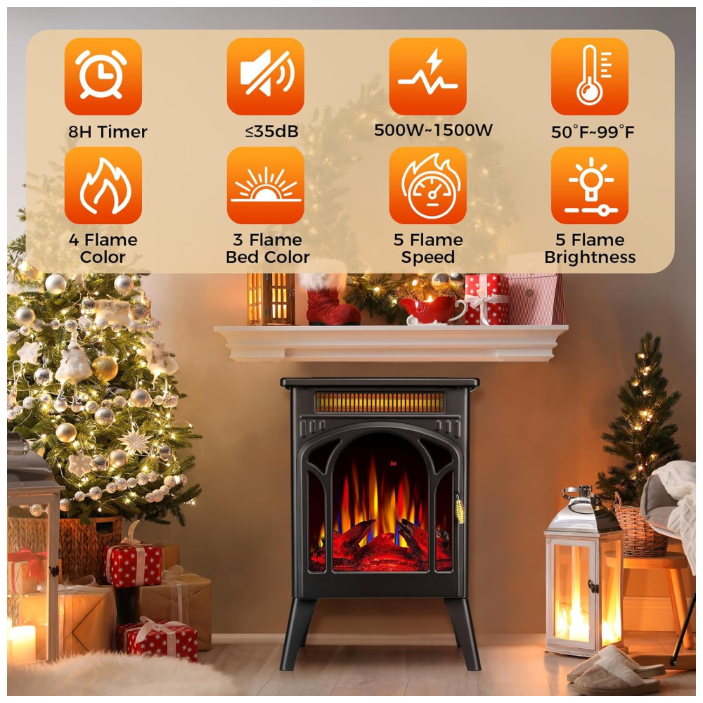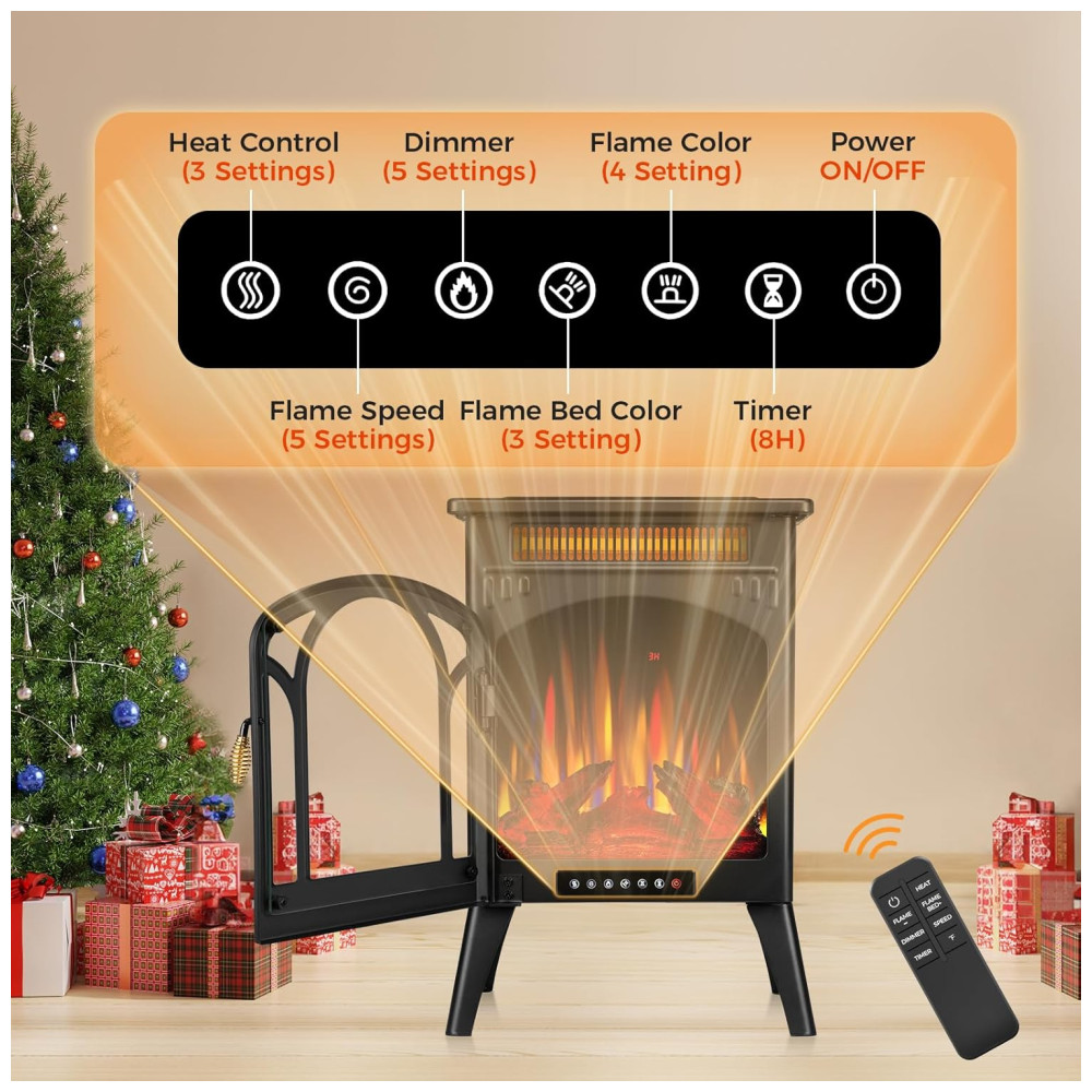 Lareira Elétrica Portátil Infravermelho com Chama Realista 3D Controle Remoto e Temporizador 110V 1500W COWSAR Preta