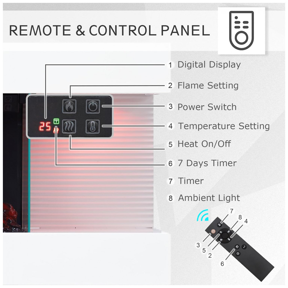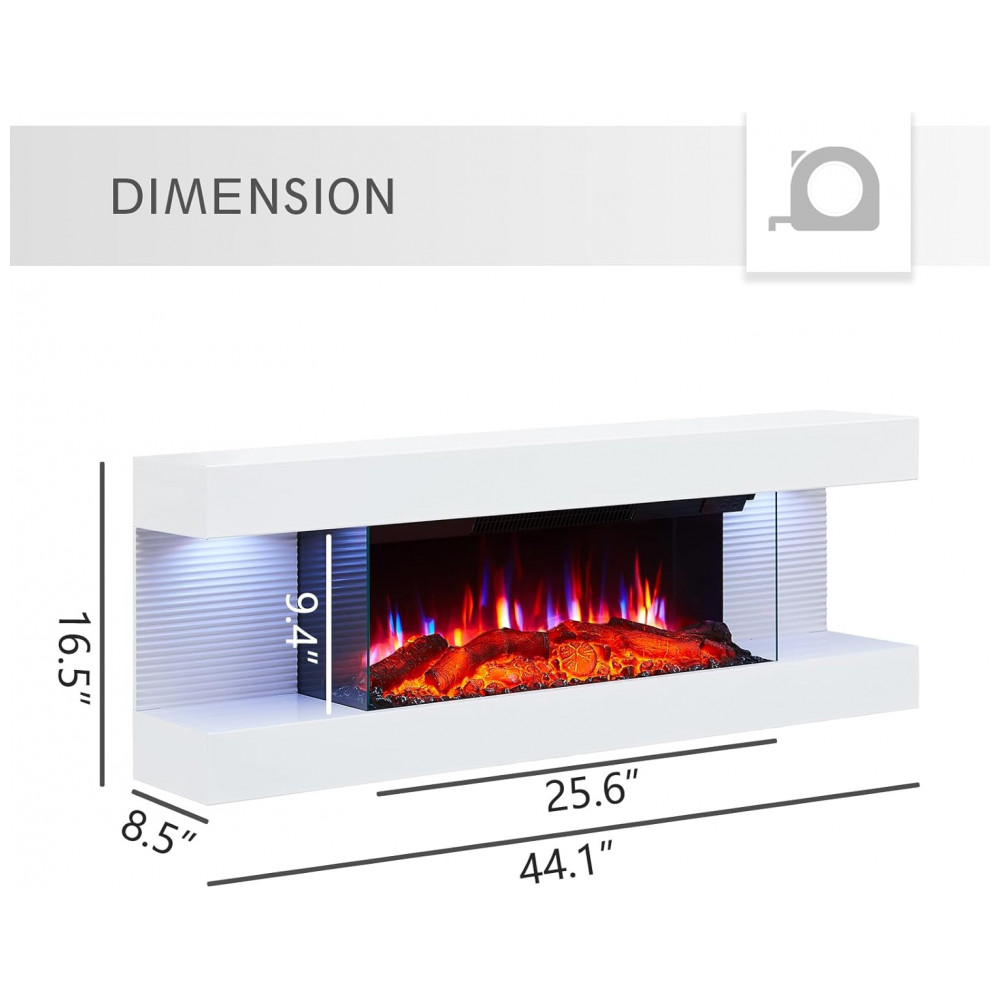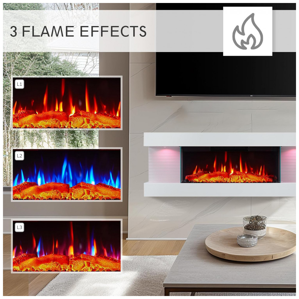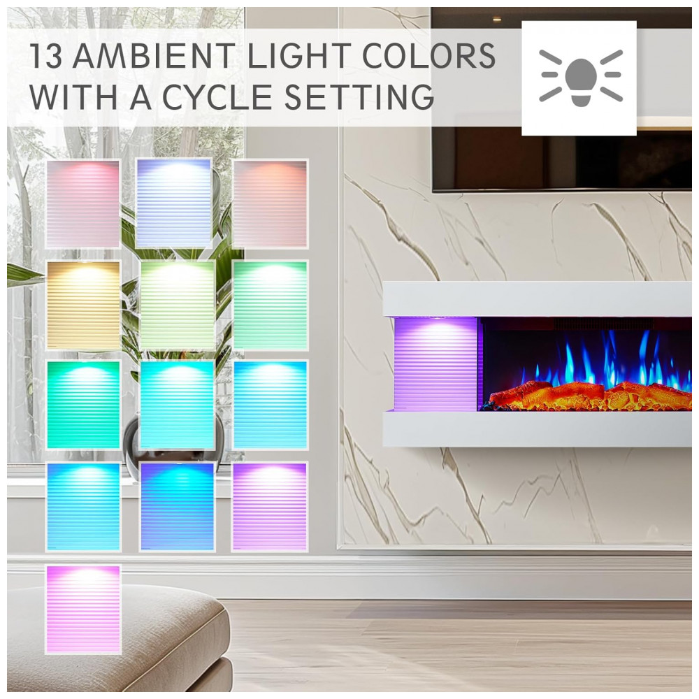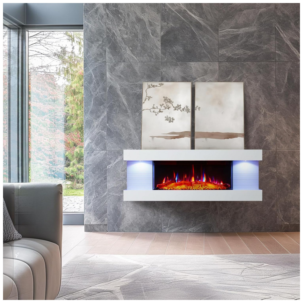Lareira Elétrica PuraFlame Alsa 11176 cm Montagem na Parede Tudo em Um com Cores de Luz Ambiente Variadas Controle Remoto Aquecedor de 1500W