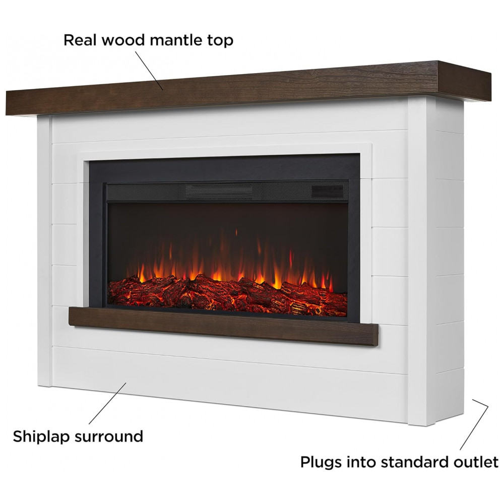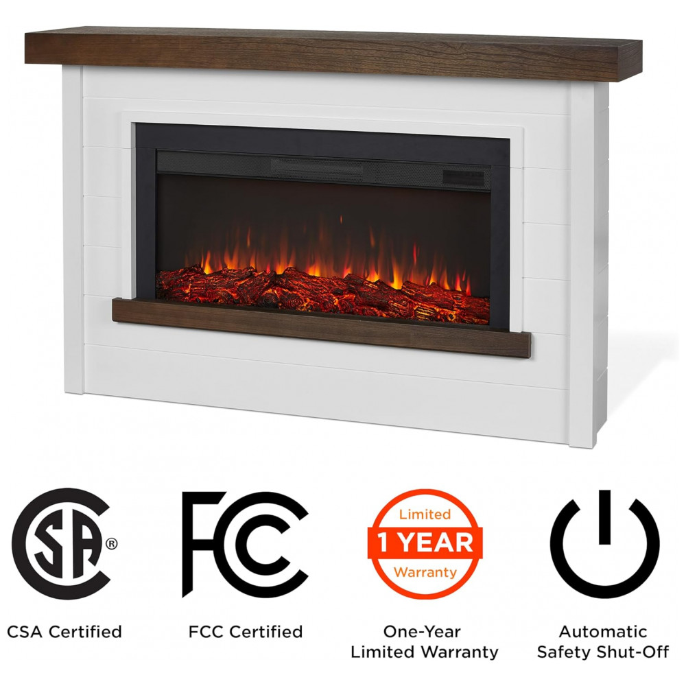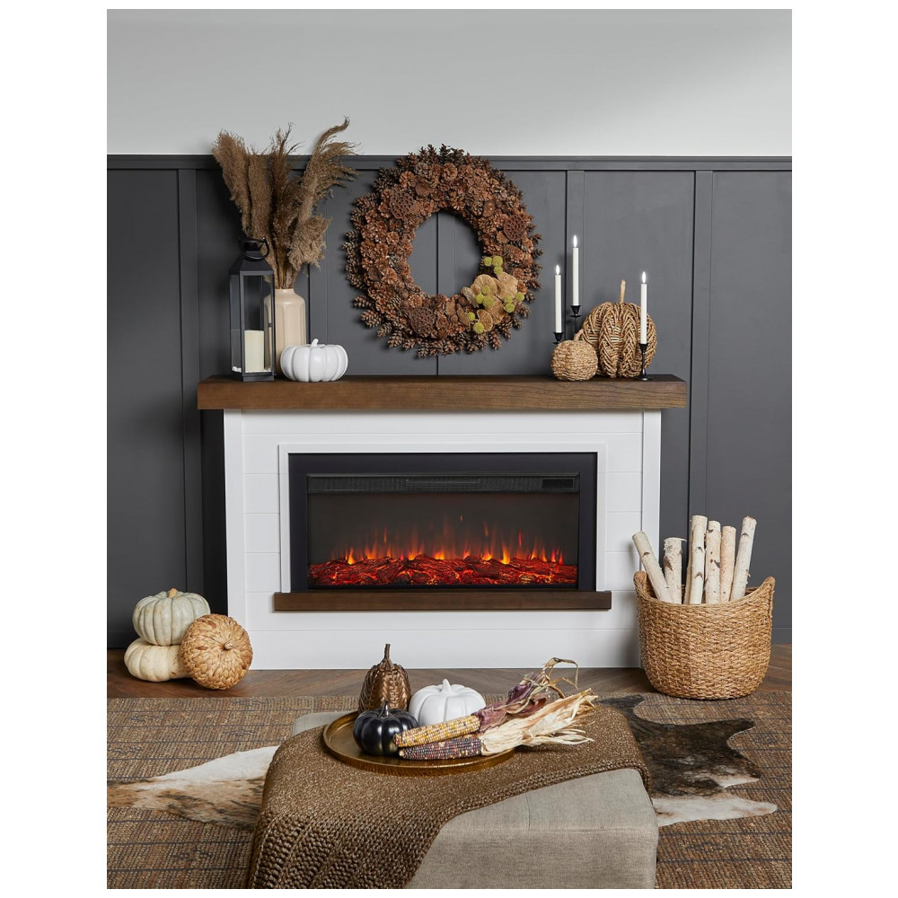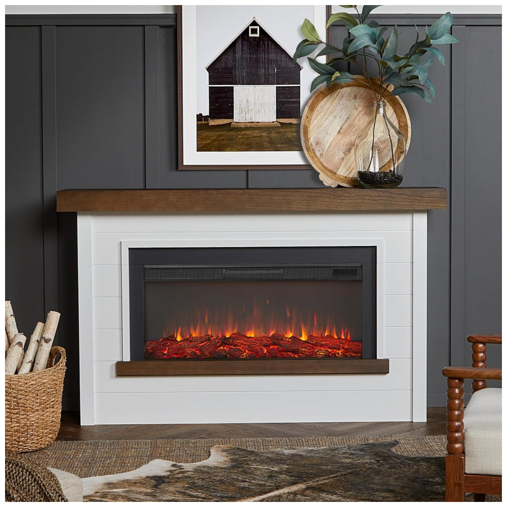Com um design moderno de estilo fazenda contemporâneo, a Lareira Elétrica Bernice apresenta um revestimento de madeira resistente sobre um sólido suporte, proporcionando um ambiente convidativo. Parte da Série Landscape da Real Flame, esta lareira elétrica widescreen imita a aparência de um fogo real, sem precisar de chaminé, ventilação especial e pode ser facilmente conectada a uma tomada comum. Possui seis opções de cores de chama, termostato ajustável e brasas dinâmicas brilhantes. Inclui suporte, inserto substituível de lareira elétrica, controle remoto, cabo de energia de 6 pés, dispositivo de segurança antitopple e ferragens. A montagem é necessária.