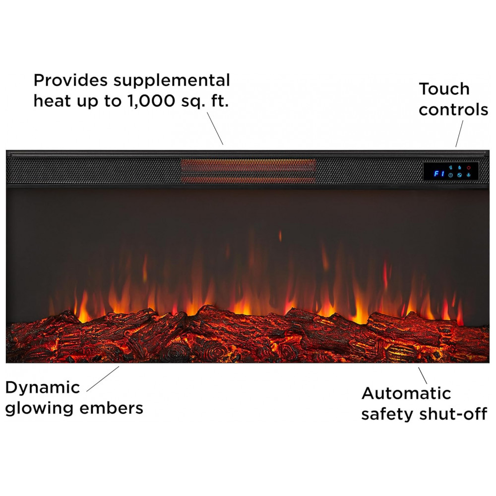 Lareira Elétrica Real Flame Bernice 17018 cm com Suporte para Sala de Estar ou Quarto Inserto de Lareira Substituível Efeito Realista de Lenha e Chamas