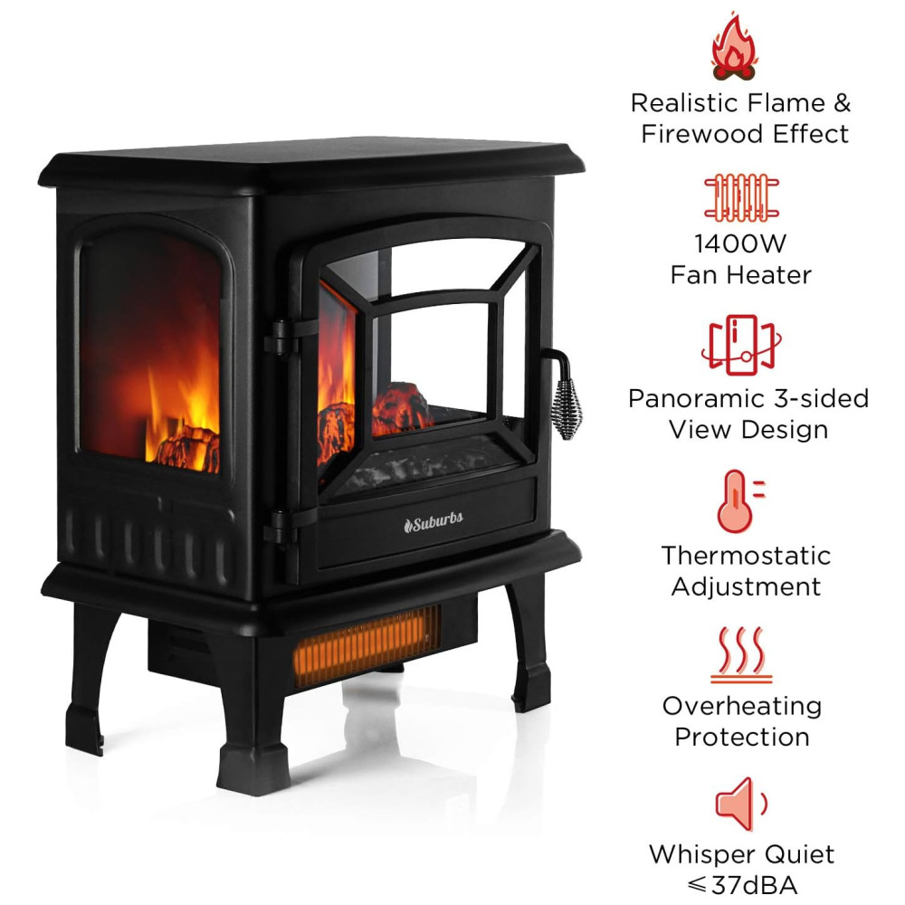 Lareira Elétrica Suburbs Realista Portátil 1400W TURBRO TS20 Preto