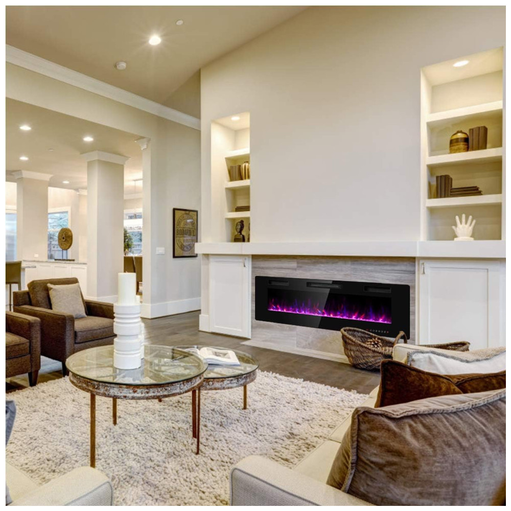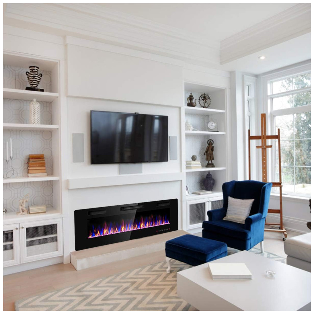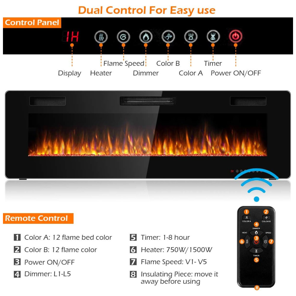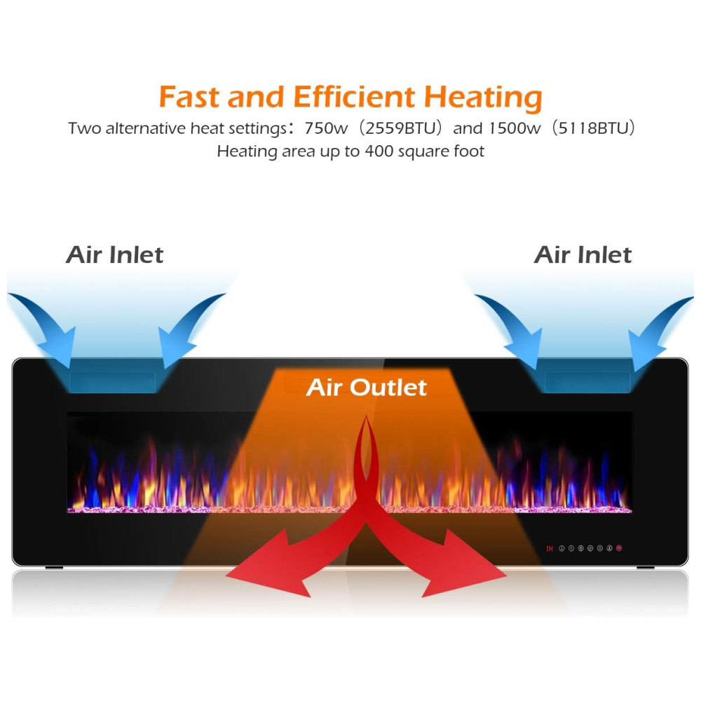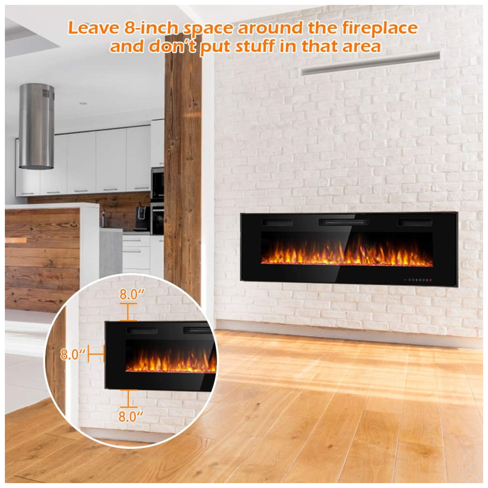 Lareira Elétrica Tangkula de 152 cmAquecedor Elétrico para Instalação na Parede ou Montado na Parede com Cor e Velocidade de Chama
