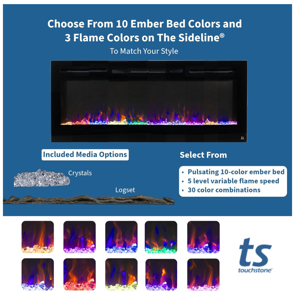 Transforme seu espaço com a Lareira Elétrica Inteligente Touchstone Sideline® de 71 cm, combinando estilo moderno, funcionalidade avançada e controle inteligente para criar um ambiente acolhedor e elegante.