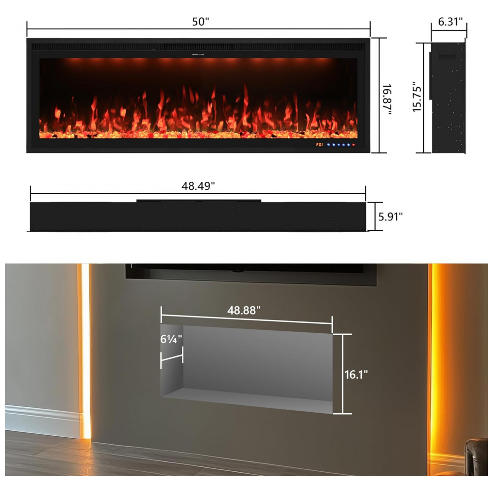 Lareira Elétrica Valuxhome 127 cm Ultra Fina Embutida e para Montagem na Parede Moldura Ultracompacta e Tela Ampliada com 13 Cores de Chama