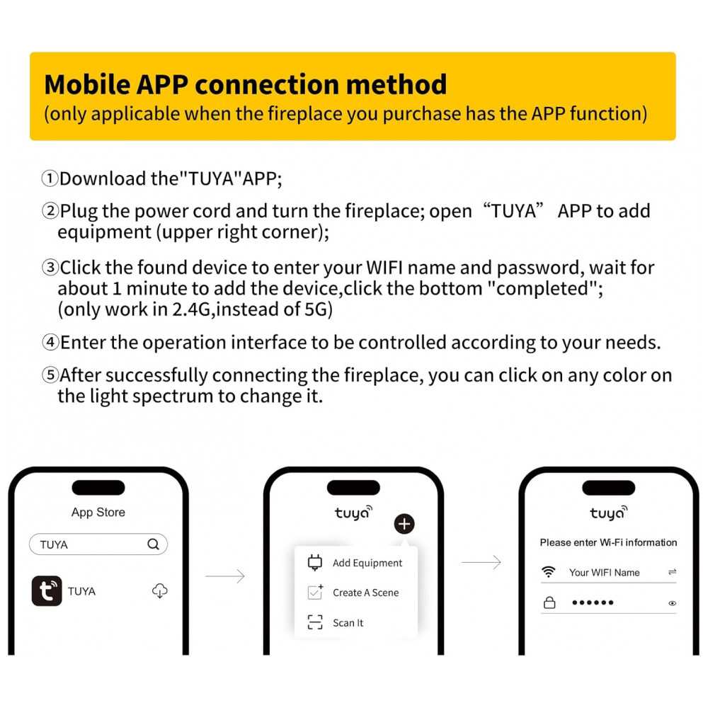 Lareira Elétrica Vapor d’Água Mexhom Multicolor Chama Atomizada Recessível Controle Remoto 200cm 110-120V