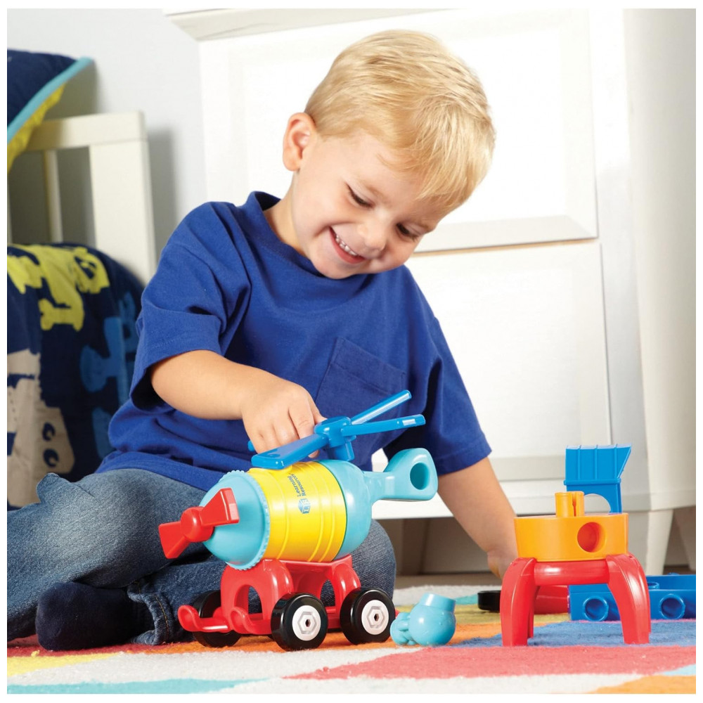 Learning Resources 1-2-3 Build It! Rocket Train Helicopter – Kit de Construção com 17 Peças Coloridas para Crianças a partir de 2 anos
