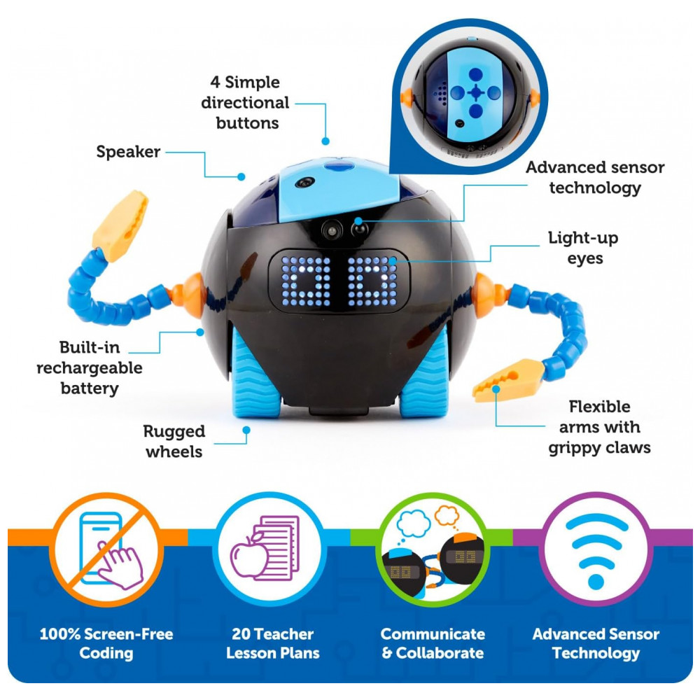 À medida que as crianças experimentam sequências de programação, estão desenvolvendo raciocínio lógico e habilidades de resolução de problemas que se transferem para outras disciplinas. Feito de plástico durável e fácil de limpar, o Cooper é construído para resistir a anos de uso em sala de aula. Se os alunos trabalham individualmente ou colaboram em grupos pequenos usando os planos de aula fáceis de seguir, eles desenvolverão confiança em conceitos STEM enquanto se divertem. Pais e professores relatam consistentemente que o Cooper mantém a atenção por mais tempo do que o esperado, com as crianças descobrindo novas funcionalidades e desafios semanas após desembalar.