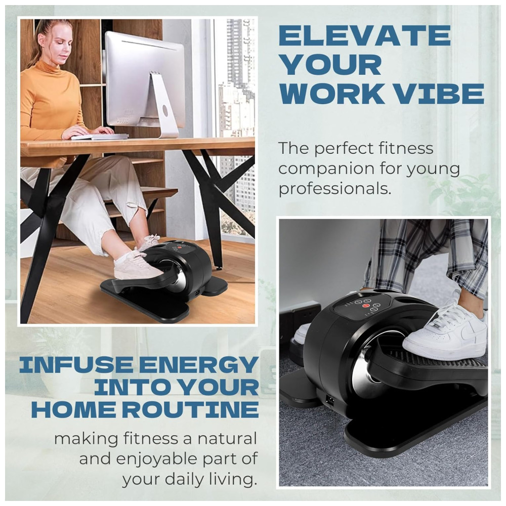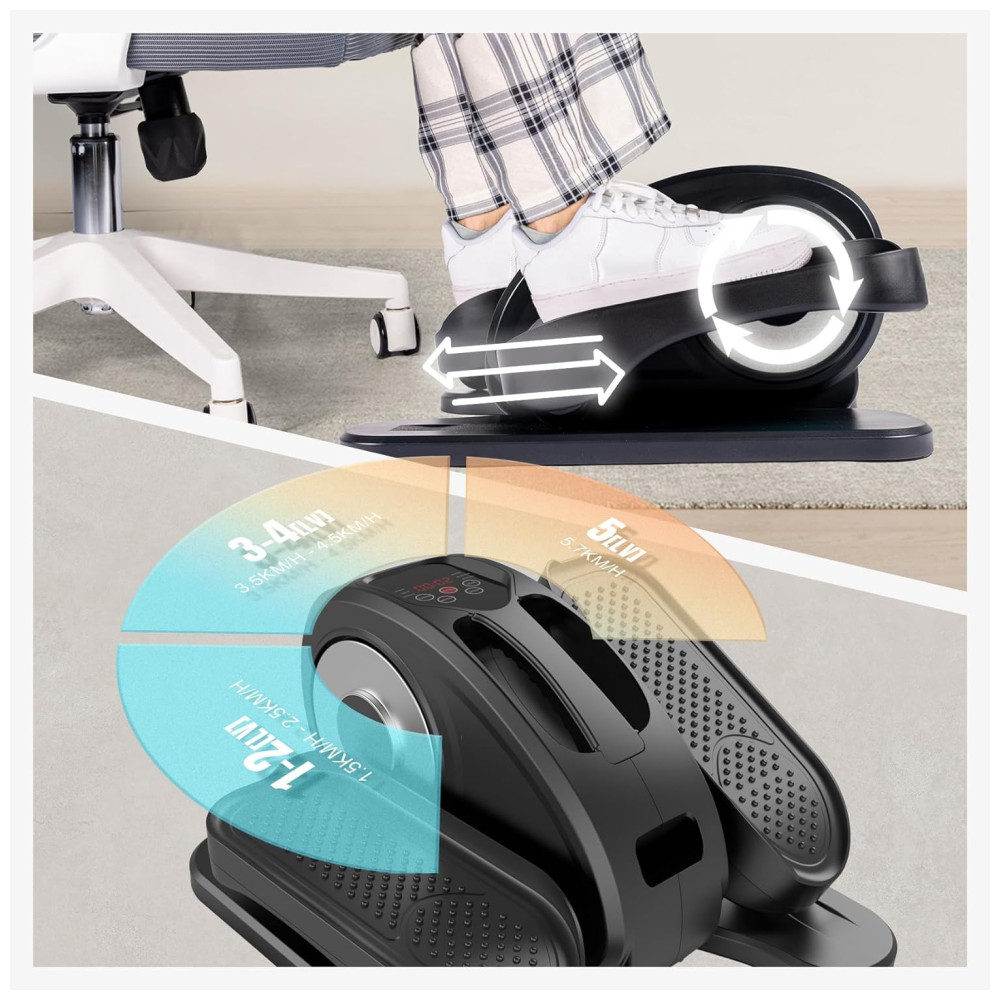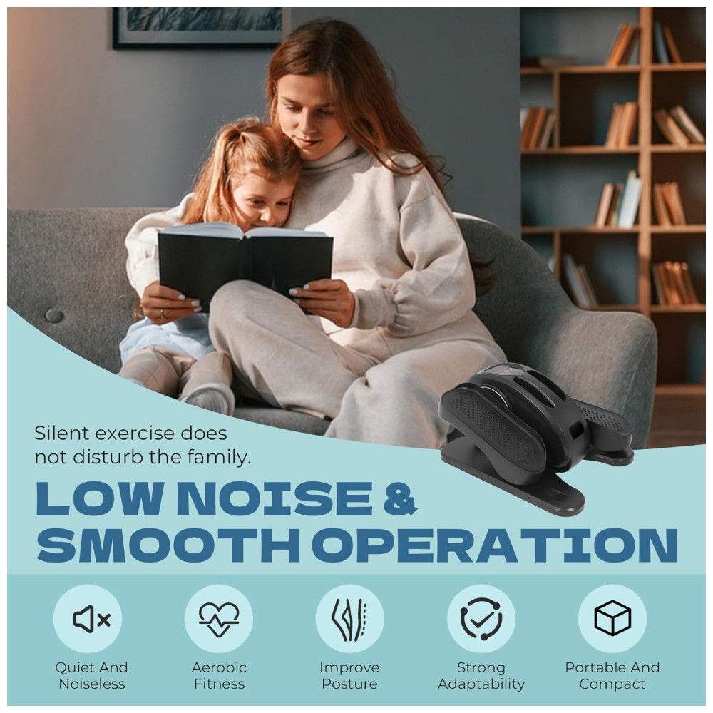 Ultra Silencioso O acionamento por correia promete um movimento de deslizamento suave para uso prolongado. Graças ao design silencioso, você pode realizar várias tarefas com a bicicleta embaixo da mesa enquanto trabalha, assiste TV e estuda sem ruídos irritantes. O movimento de ciclismo aumenta o fluxo sanguíneo, melhora o equilíbrio geral e mantém o corpo sempre alinhado. Trabalho feito, entretenimento obtido, calorias queimadas