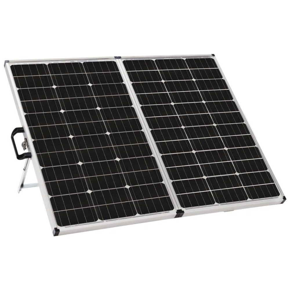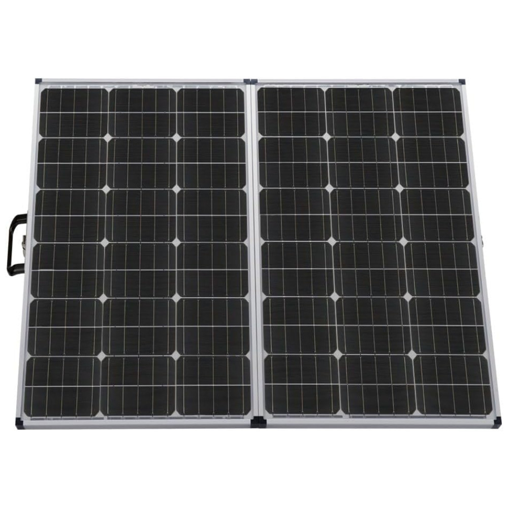 O kit inclui painel dobrável de 140 watts, controlador de carga de , estojo de náilon, cabo de
