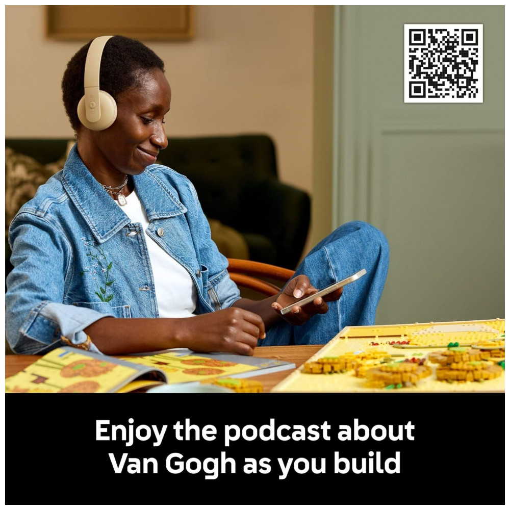 Ideal como peça de decoração sofisticada para ambientes como home office, sala de estar ou estúdio, este conjunto combina arte, relaxamento e criatividade — uma alternativa elegante aos tradicionais quadros. É também um presente memorável para entusiastas de arte ou fãs da LEGO que valorizam experiências de construção premium. Durante a montagem, o builder ainda pode escanear um código QR para ouvir um podcast exclusivo sobre a vida e inspiração de Van Gogh.