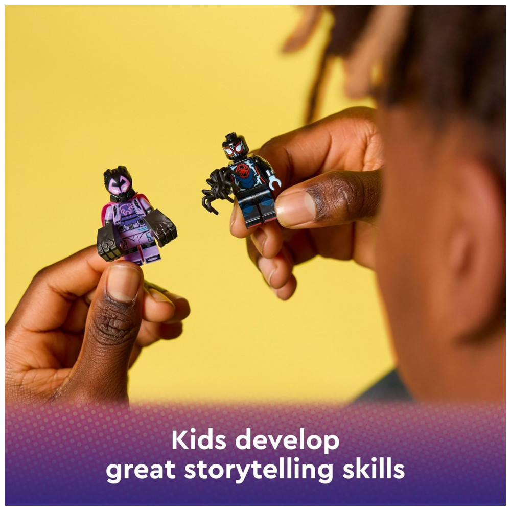 Ideal para crianças a partir de 5 anos, este conjunto estimula a imaginação, habilidades motoras e a criatividade, proporcionando horas de diversão enquanto os pequenos exploram o multiverso do Homem-Aranha.
