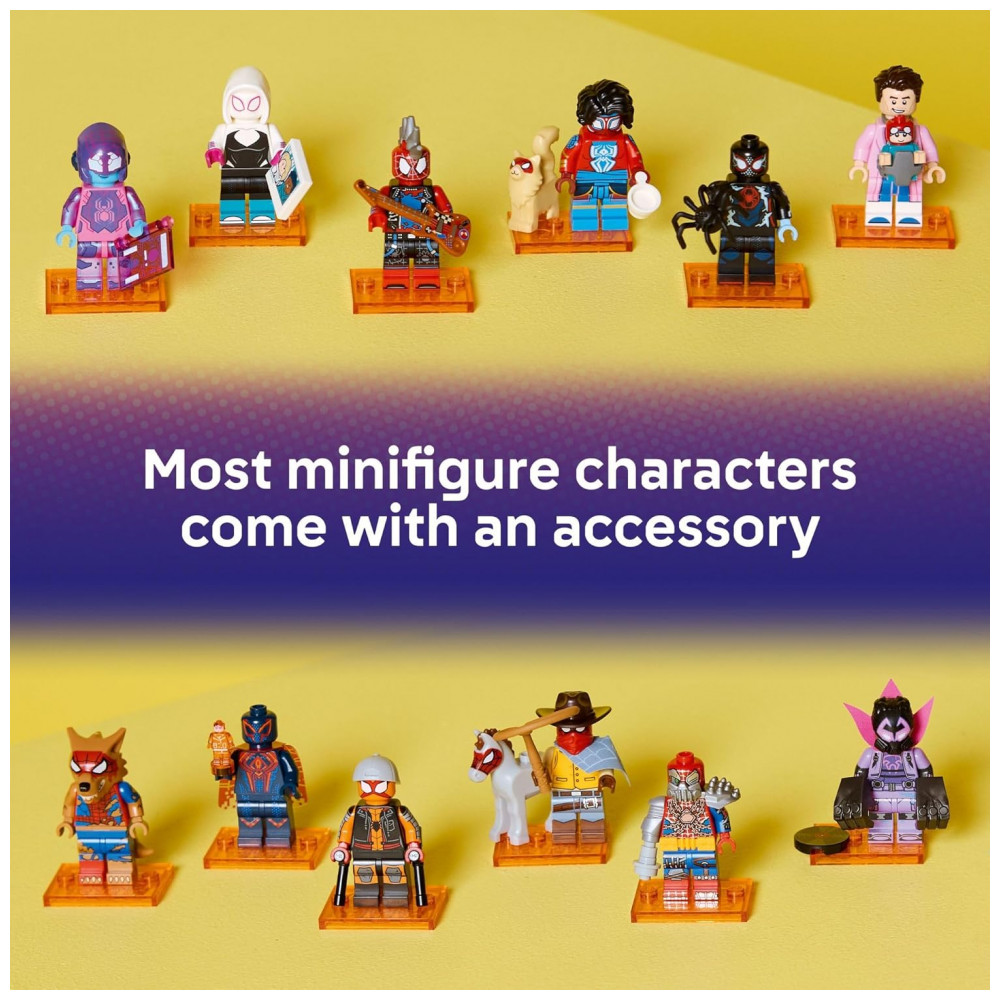 Com 12 personagens únicos para colecionar, incluindo figuras como Miles Morales/Spider-Man, Gwen Stacy/Spider-Woman e Miguel O’Hara/Spider-Man 2099, os fãs podem expandir suas coleções e recriar cenas icônicas do filme. Cada minifigura vem acompanhada de pelo menos um acessório autêntico, permitindo aventuras de brincadeira e storytelling criativo.