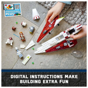 Star Wars Attack of the Clones fans may use the Force to build this LEGO brick model of Obi Wan Kenobis Jedi Starfighter 75333. An exciting gift for kids aged 7 and up, it features an opening minifigure cockpit for Obi Wan, 2 stud shooters, retractable landing gear, lightsaber storage clips and an attachment point on the wing for droid R4 P17s head. This buildable toy playset includes 2 LEGO Star Wars minifigures Obi Wan and, for the first time ever, the Kaminoan Taun We, plus the R4 P17 LEGO astromech droid figure to inspire creative role play. Step by step building instructions are included with this set. And check out the LEGO Building Instructions app, which has intuitive zoom and rotate viewing tools to enhance the creative experience. The LEGO Group has been recreating iconic starships, vehicles, locations and characters from the Star Wars universe since 1999, and there is a huge assortment of sets to delight fans of all ages