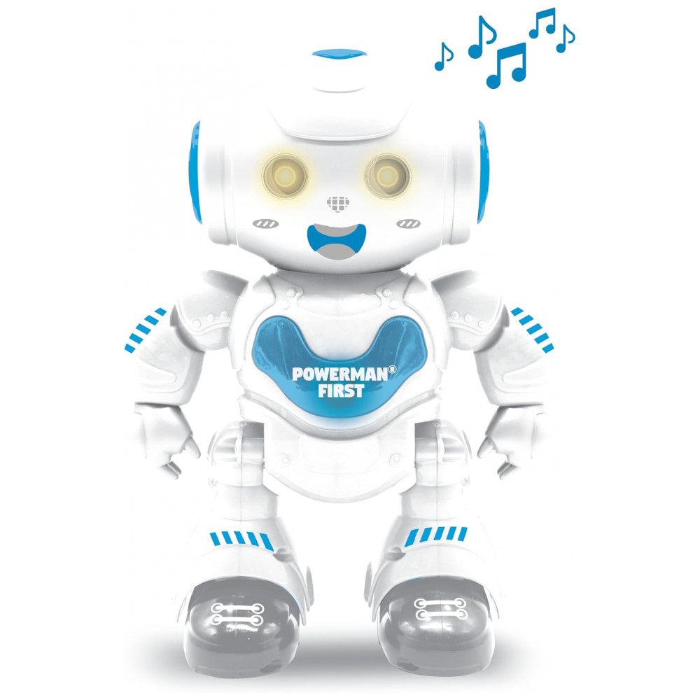 COM CONTROLE REMOTO! Controle o Powerman First para frente, para trás, para a direita e para a esquerda, ele se move em todas as direções! PROGRAMÁVEL Um verdadeiro robô STEM que ajuda as crianças a descobrirem a lógica da programação. Programe até 15 ações. TOCA MÚSICA E DANÇA Ouça suas várias faixas musicais e assista-o dançar em seu quarto como nenhum outro robô. Articulações flexíveis e ampla faixa de movimento. Incríveis efeitos de som e luz. Inclui 1 robô, 1 controle remoto infravermelho, 1 manual do usuário. COM CONTROLE REMOTO! Controle o Powerman First para frente, para trás, para a direita e para a esquerda, ele se move em todas as direções! PROGRAMÁVEL Um verdadeiro robô STEM que ajuda as crianças a descobrirem a lógica da programação. Programe até 15 ações. TOCA MÚSICA E DANÇA Ouça suas várias faixas musicais e assista-o dançar em seu quarto como nenhum outro robô. Articulações flexíveis e ampla faixa de movimento. Incríveis efeitos de som e luz.