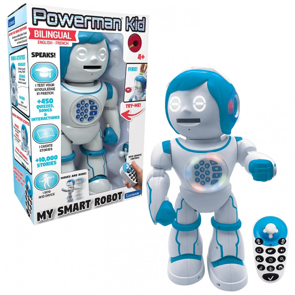 LEXiBOOK Powerman Kid: Robô Educativo Bilingue Inglês/Espanhol que Anda Fala Dança Cria Histórias Quiz