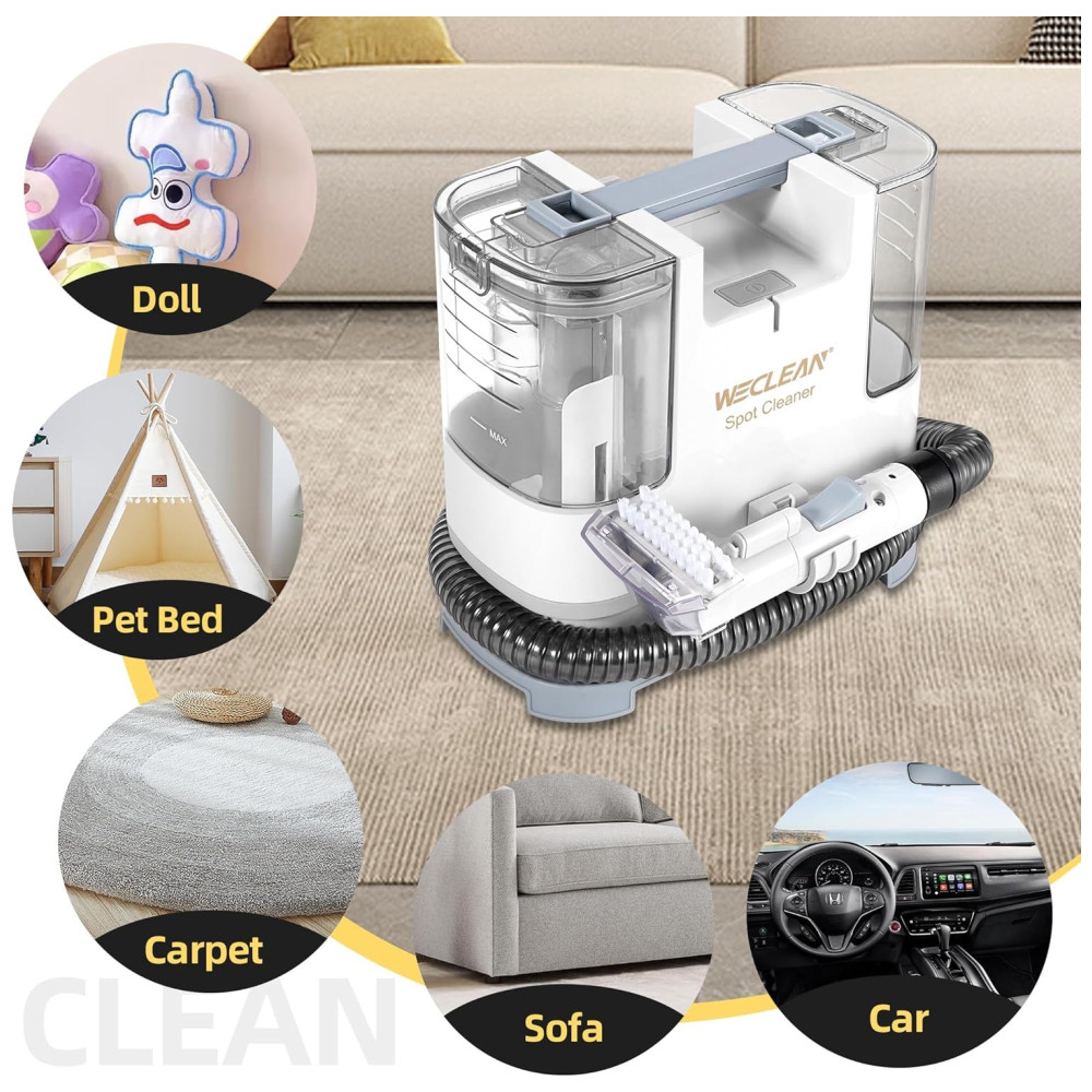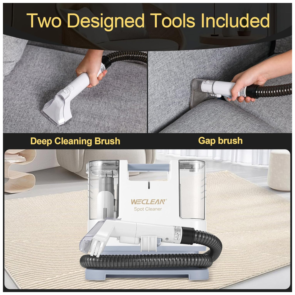 Poderosa Sucção: O poder de sucção superior a 9000Pa é capaz de absorver e limpar manchas em sofás, carpetes, pisos e outros locais, como urina de animais de estimação, manchas de vinho tinto, etc. Como máquina de limpeza de manchas, o WECLEAN C1 se destaca na limpeza de carpetes.