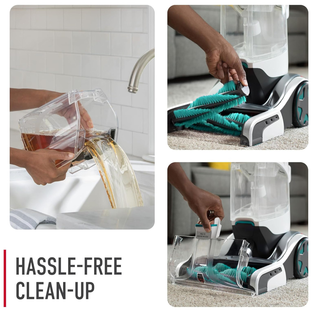 Inclui: Garrafa de 1,89 litros de solução de limpeza de carpetes Renewal, ferramenta antimicrobiana 2-em-1 para animais de estimação, garrafa de amostra de solução de limpeza, mangueira de 2,44 metros, bolsa de armazenamento de acessórios.