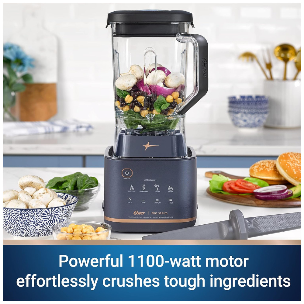 Conheça o Liquidificador Oster Pro Series com Jarra XL de Tritan de 9 Copos e Ferramenta de Empurrar, Azul Escuro: