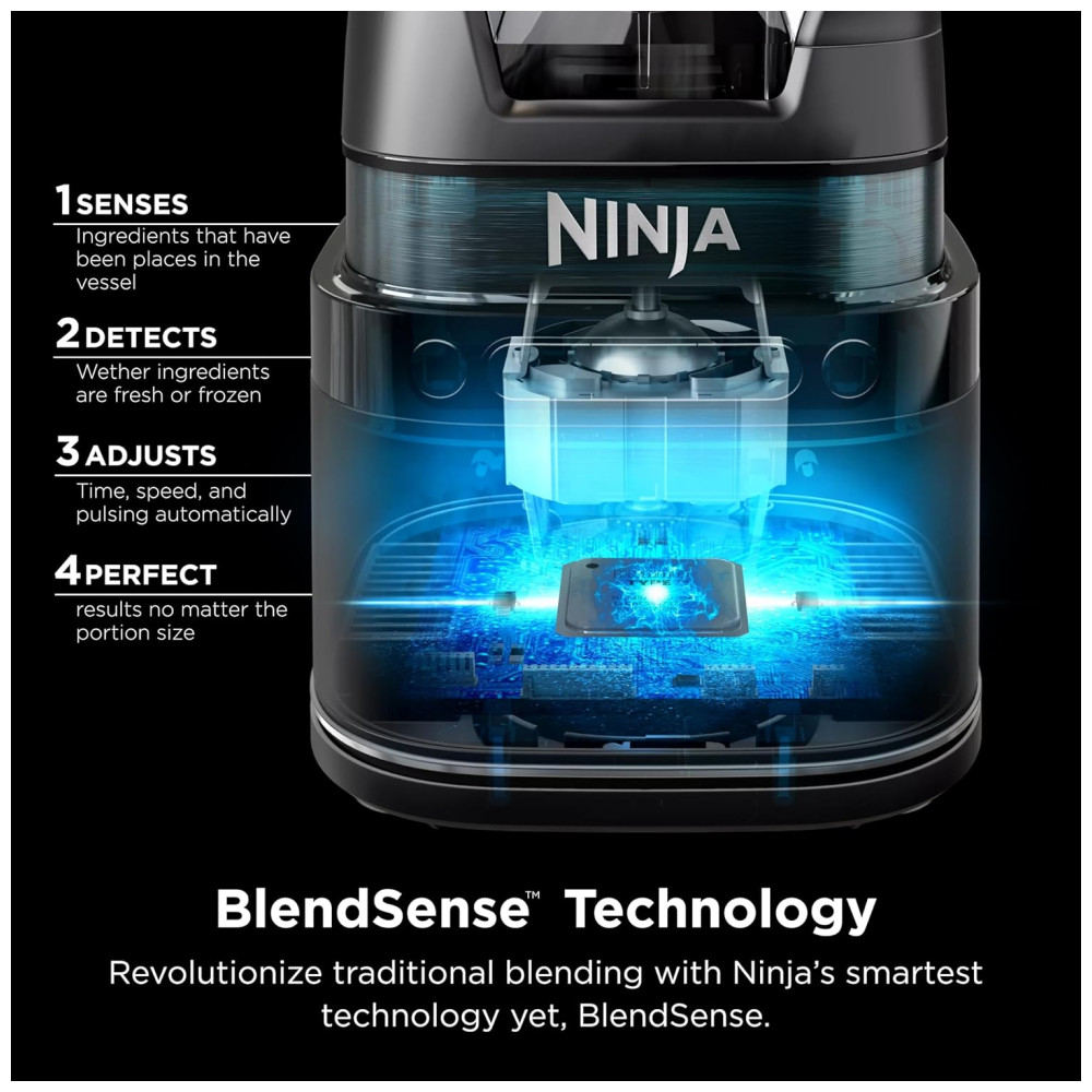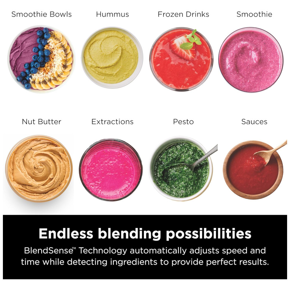 BLENDSENSE: A tecnologia mais inteligente da Ninja que ajusta automaticamente a velocidade e o tempo para resultados perfeitamente suaves. Um seletor inovador informa ao usuário em qual modo o liquidificador está operando, proporcionando uma experiência verdadeiramente amigável ao usuário.